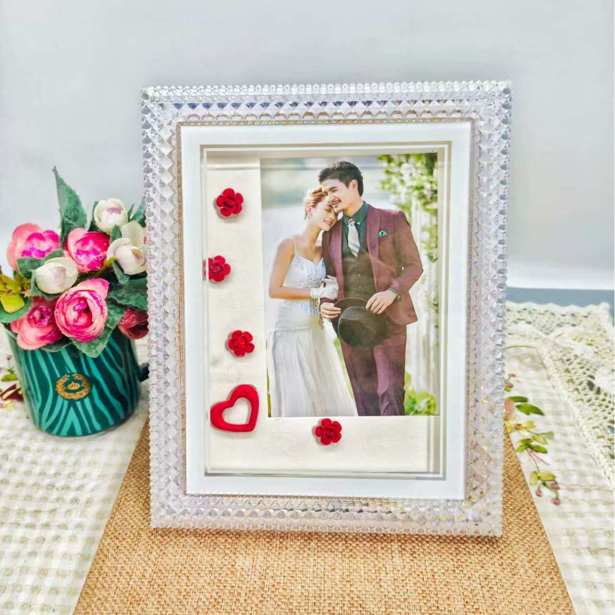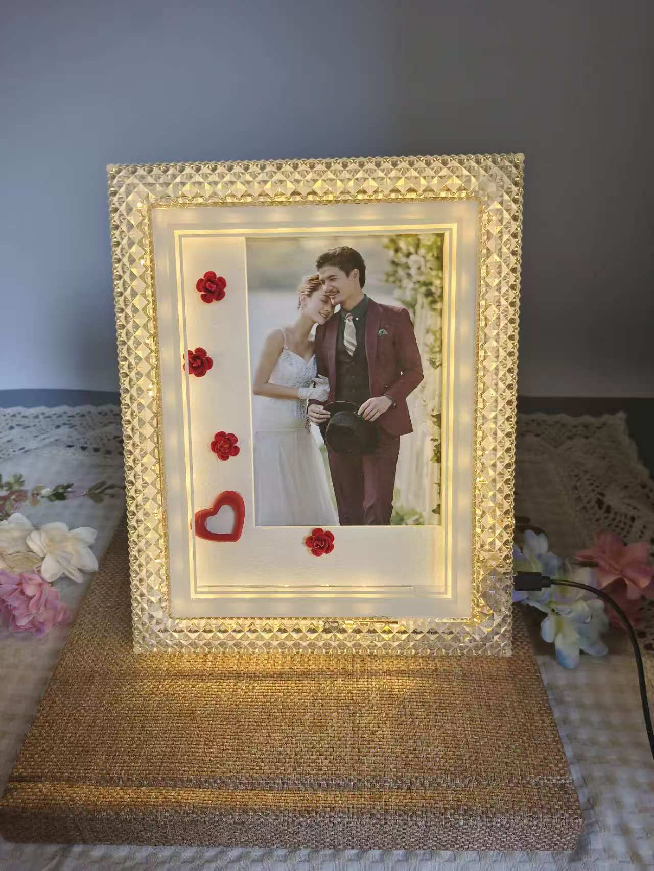 사진 프레임 테이블, 고급형, 조명 포함, LED 침대 옆, 창의적인 조명, 고급 플러그인, 데스크탑 DIY, 심플한 분위기, 크로스보더