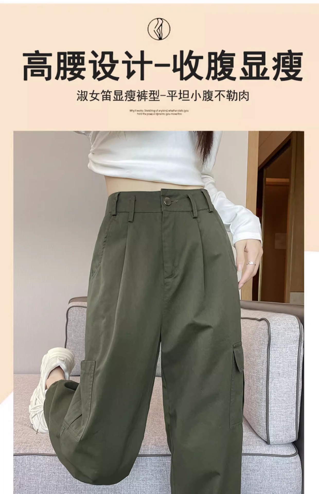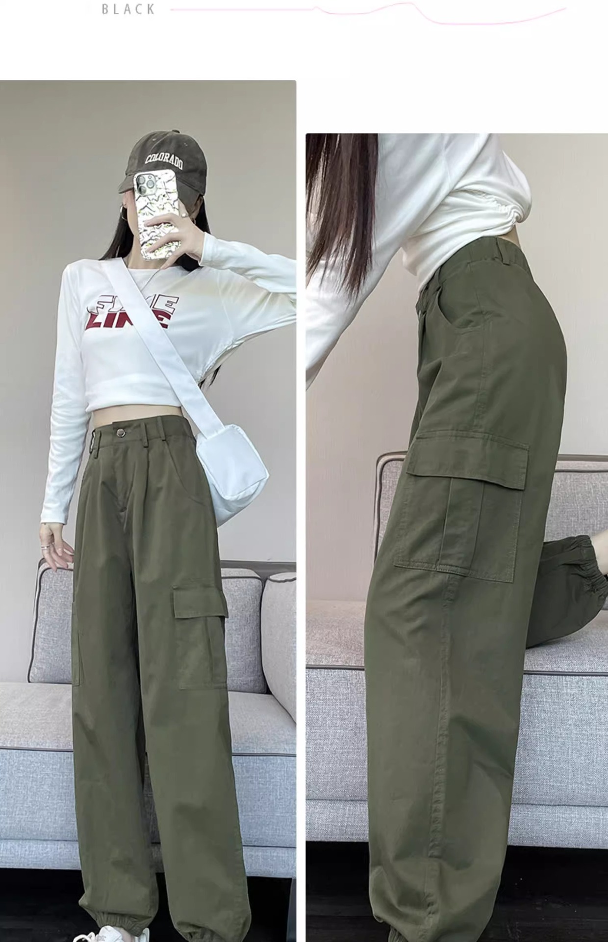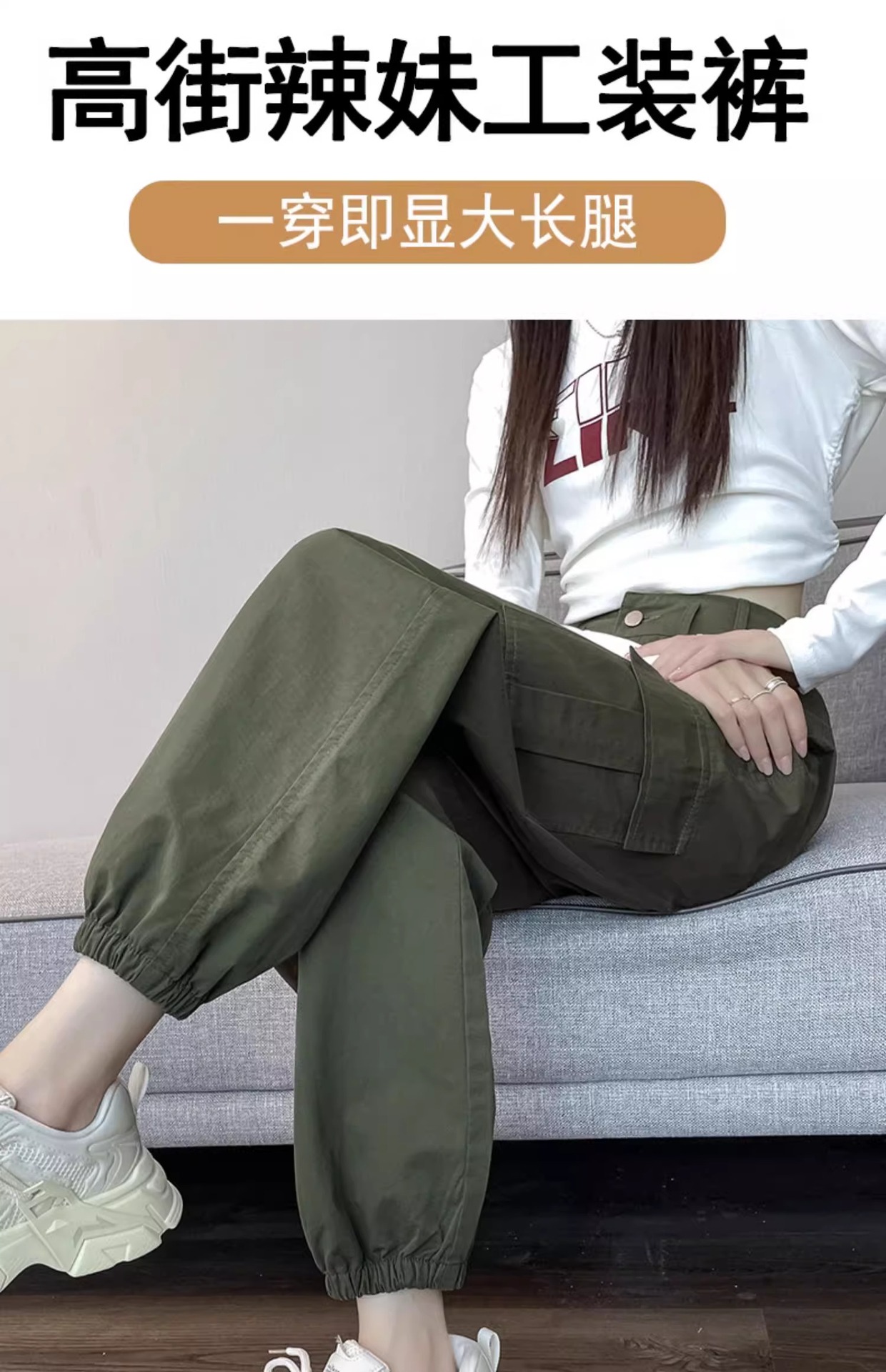 군녹색 미국식 작업복 여성용 봄 가을 2025 신상 루즈핏 슬림 스트레이트 캐주얼 팬츠 아웃도어 등산 바지스토어 가기