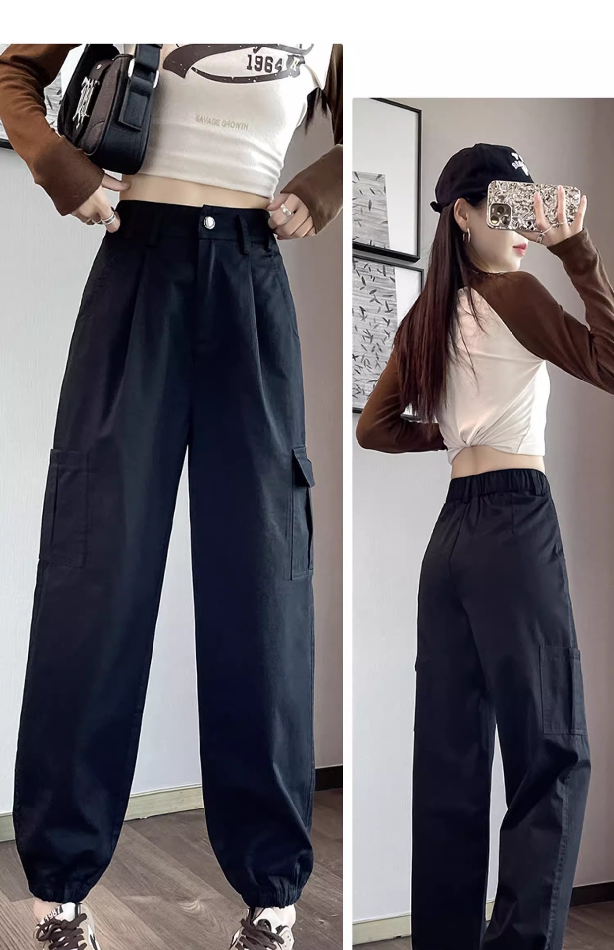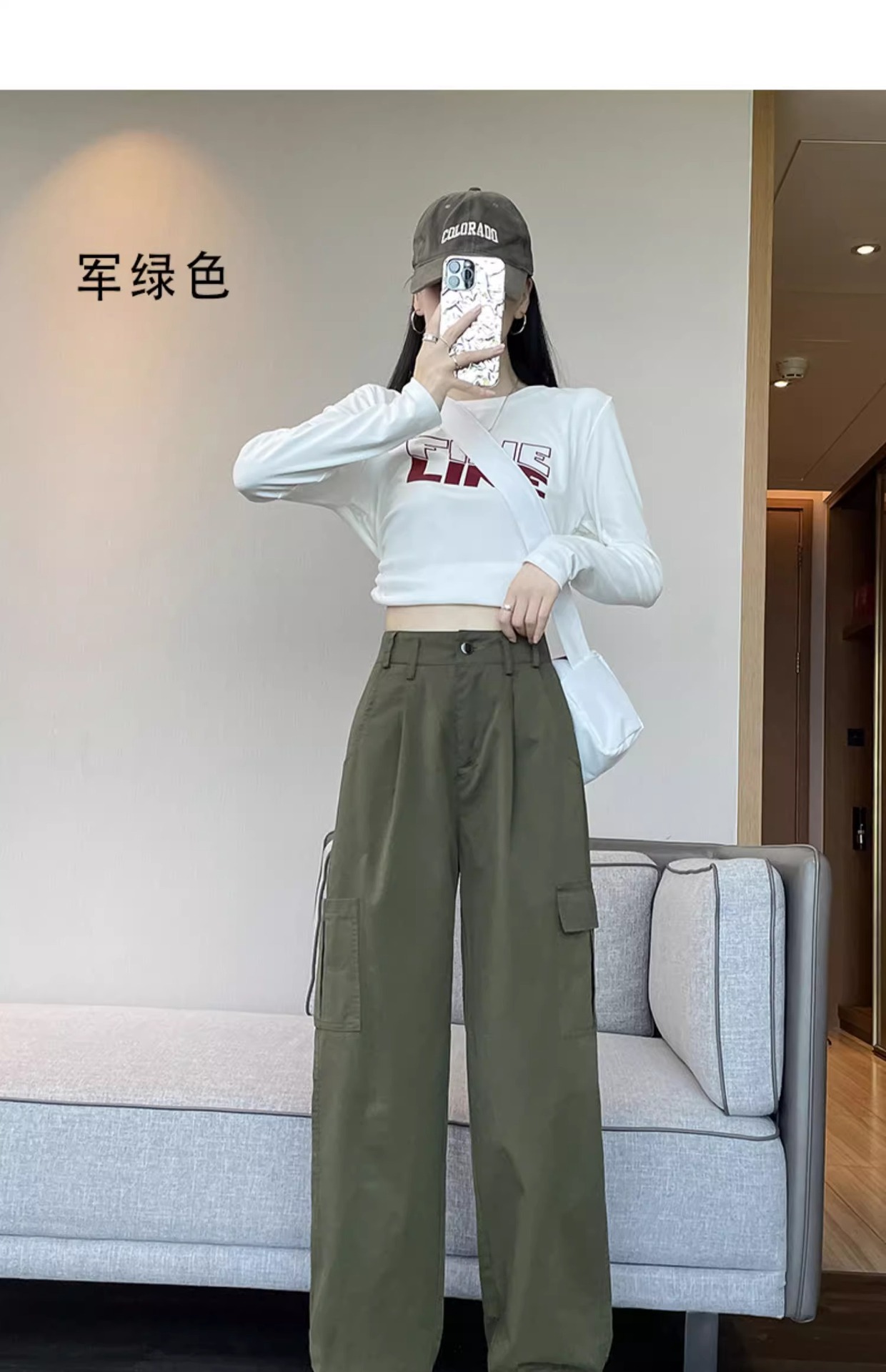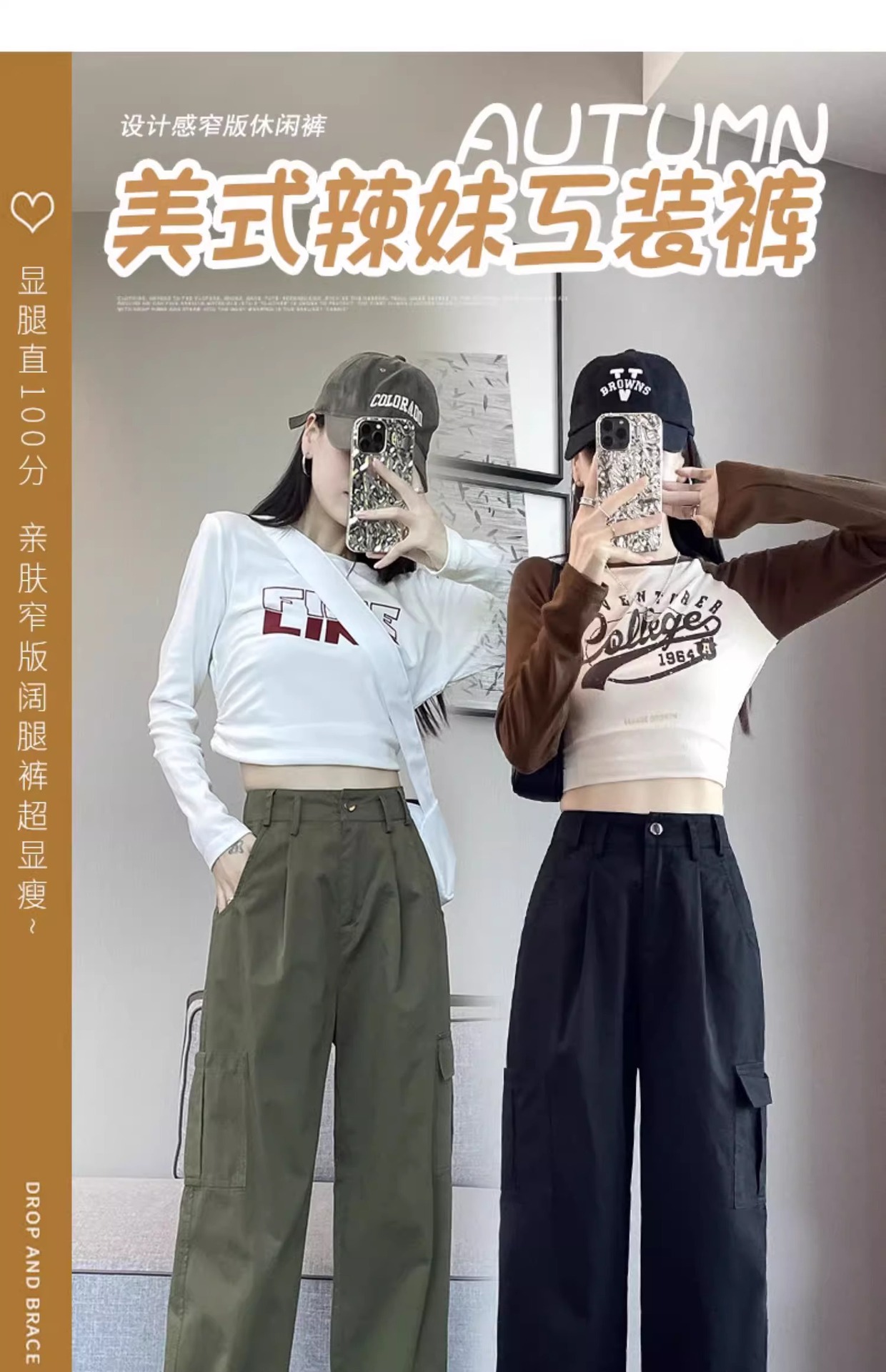 군녹색 미국식 작업복 여성용 봄 가을 2025 신상 루즈핏 슬림 스트레이트 캐주얼 팬츠 아웃도어 등산 바지스토어 가기