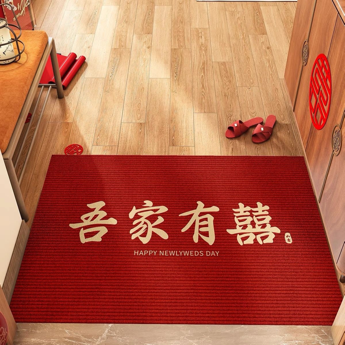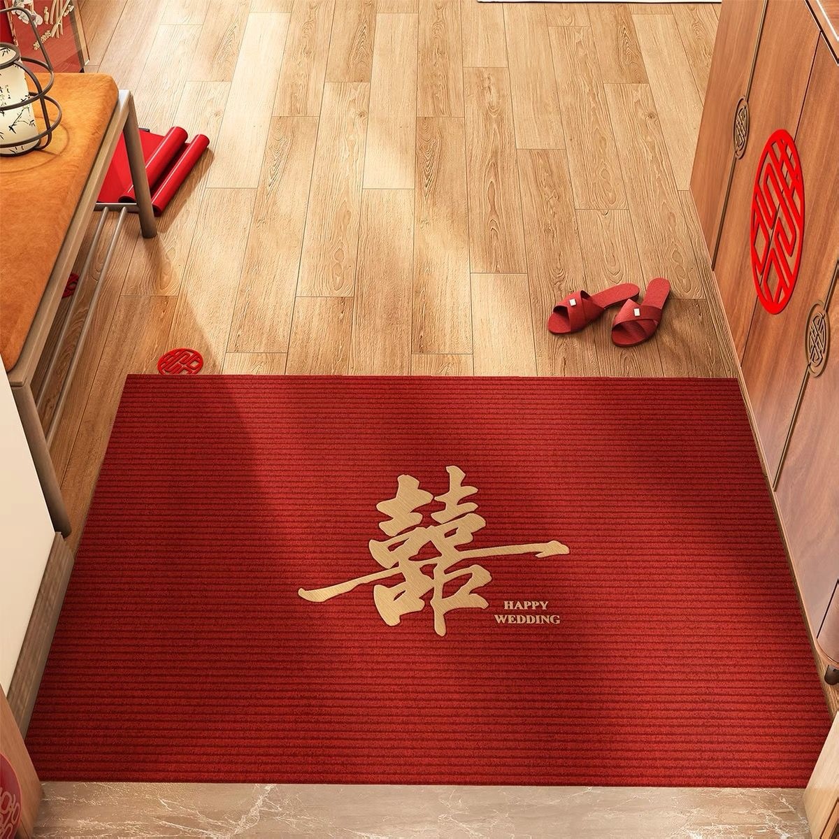 웨딩 입구 문 매트 레드 축제 입구 문 매트 홈 웨딩 룸 레이아웃 카펫 분위기 문 매트
