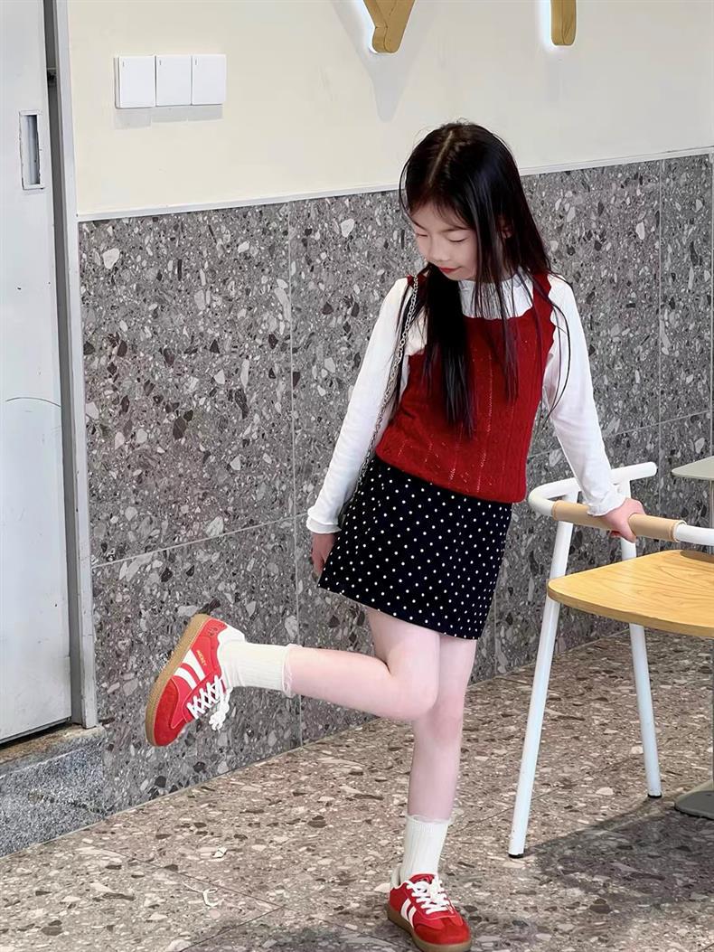 여아 도트무늬 스커트 2025년 신상 아동 패션 다재다능한 짧은 스커트 여아 봄, 가을 스커트 유행