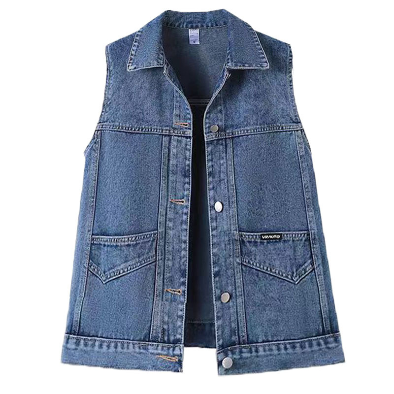 플러스 사이즈 캐주얼 데님 조끼 여자 2024 년 봄과 여름 새로운 느슨한 올 매치 포켓 조끼 외부 웨이스트 코트 트렌디스토어 가기