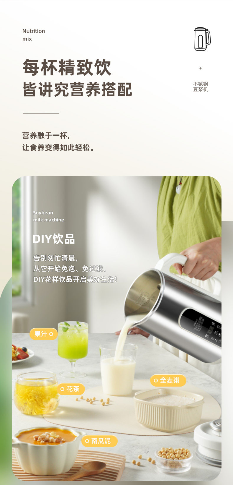 독일 미니 두유 기계 가정용 완전 자동 무소음 및 잔류물 없는 새로운 벽 파괴 기계 소형 조리가 필요 없는 쌀 시리얼 기계스토어 가기
