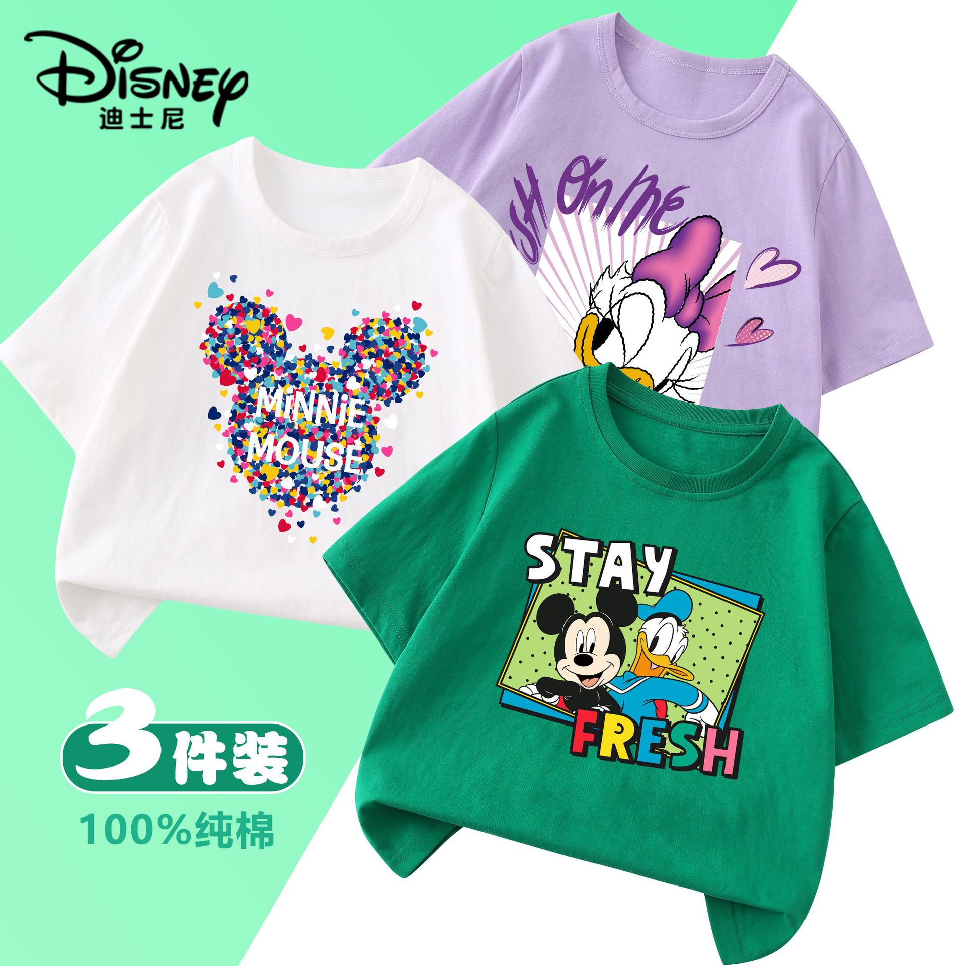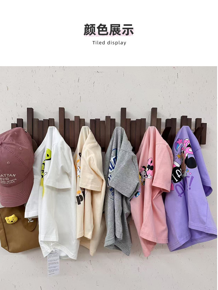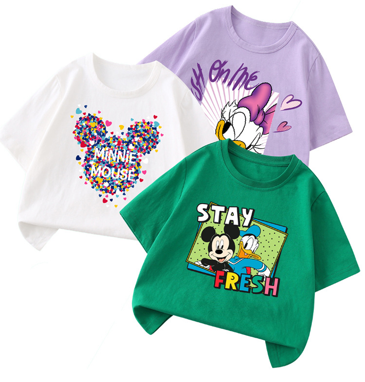 2025 새로운 아동면 반팔 티셔츠 서양식 아기 소년과 소녀 만화 미키 크루 넥베이스 셔츠 3 피스 세트스토어 가기