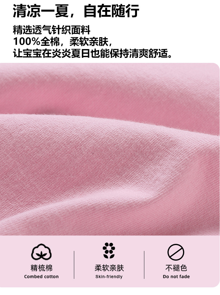 2025 새로운 아동면 반팔 티셔츠 서양식 아기 소년과 소녀 만화 미키 크루 넥베이스 셔츠 3 피스 세트