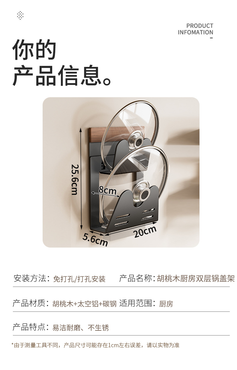 • 호두나무 단층 냄비 뚜껑 선반
