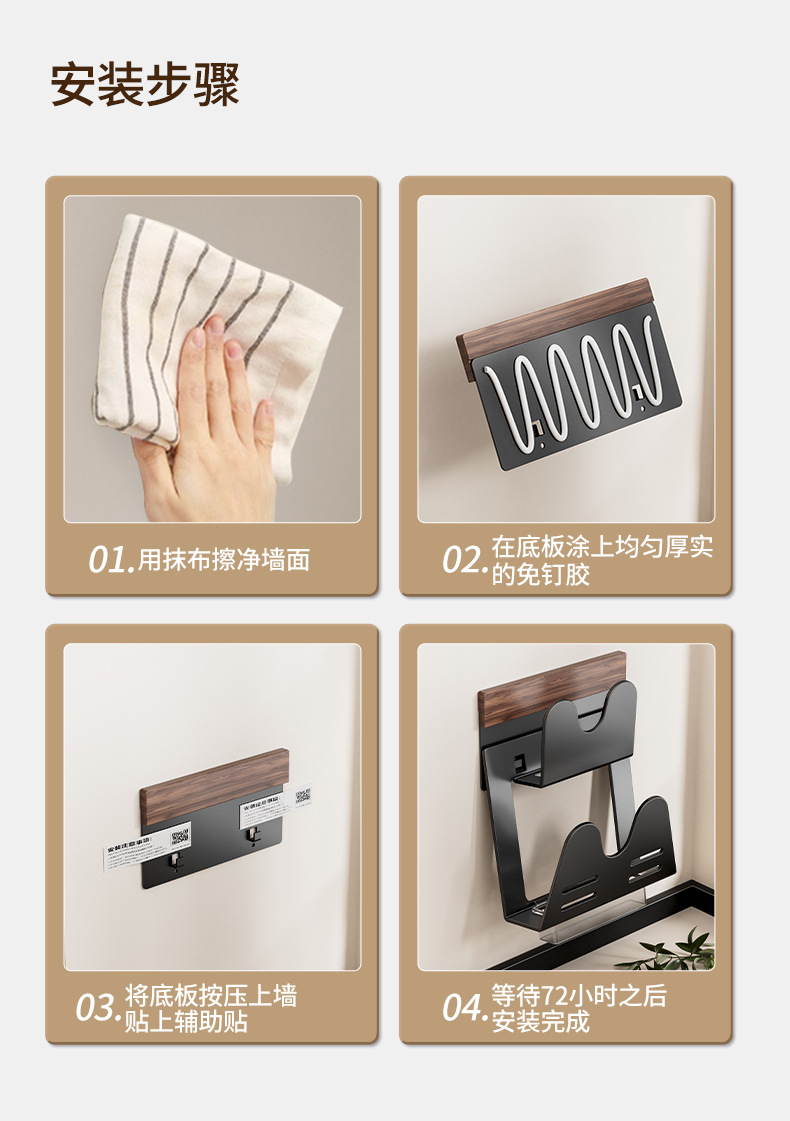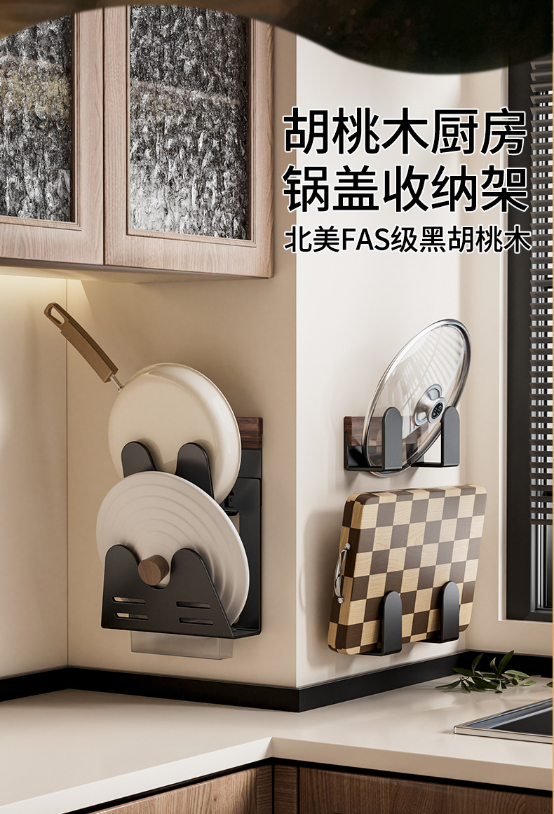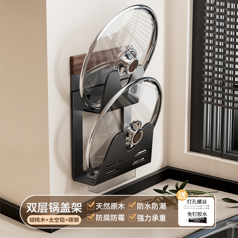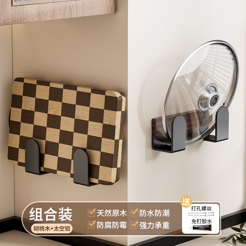 호두나무 벽걸이 냄비뚜껑걸이, 두꺼운 도마 배수구 수납선반, 공간 알루미늄 펀치프리 주방 벽걸이 수납선반