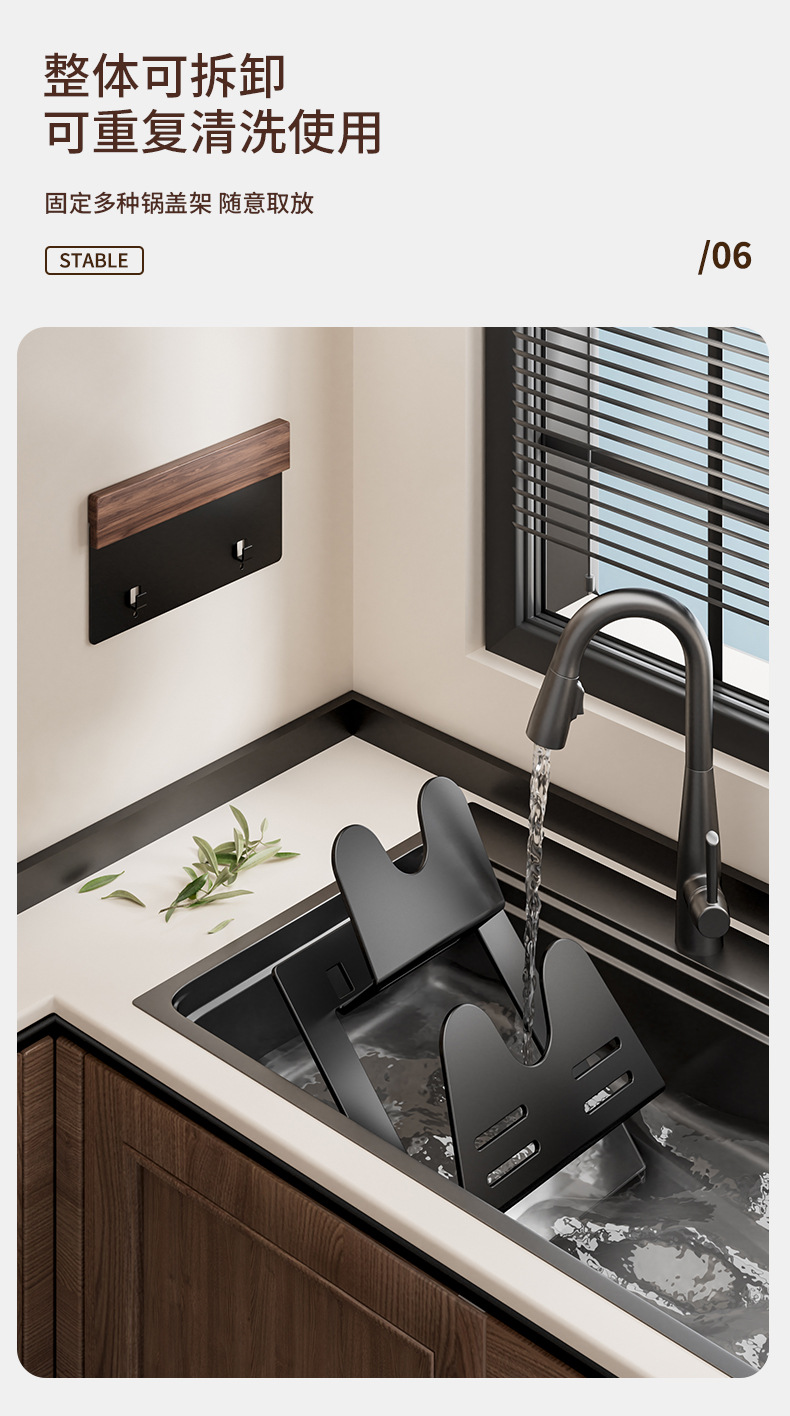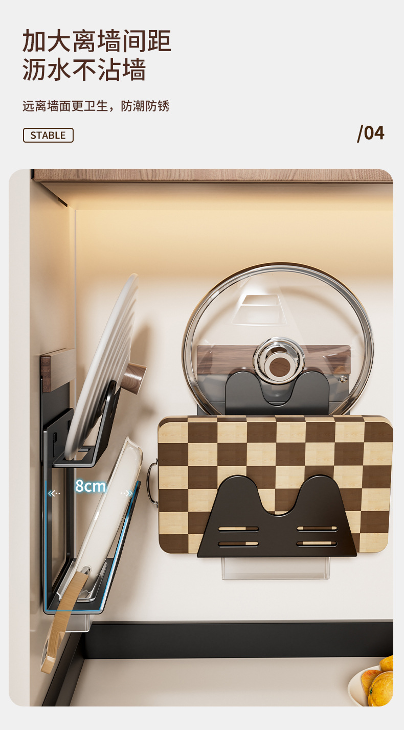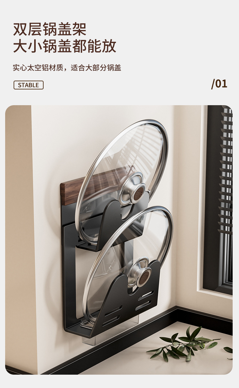 호두나무 벽걸이 냄비뚜껑걸이, 두꺼운 도마 배수구 수납선반, 공간 알루미늄 펀치프리 주방 벽걸이 수납선반스토어 가기