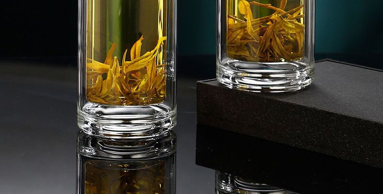 원 버튼 빠른 오프닝 컵 차 차 분리 컵 차 두꺼운 더블 레이어 유리 그물 빨간색 높은 borosilicate 컵 도매