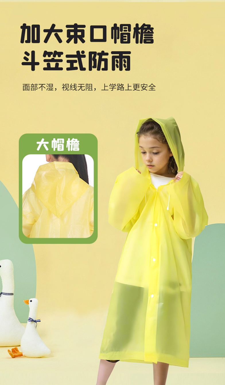 소스 제조업체 어린이 비옷 일회용 비옷 길고 두꺼운 학생 학교 여행 하이킹 판초 도매스토어 가기