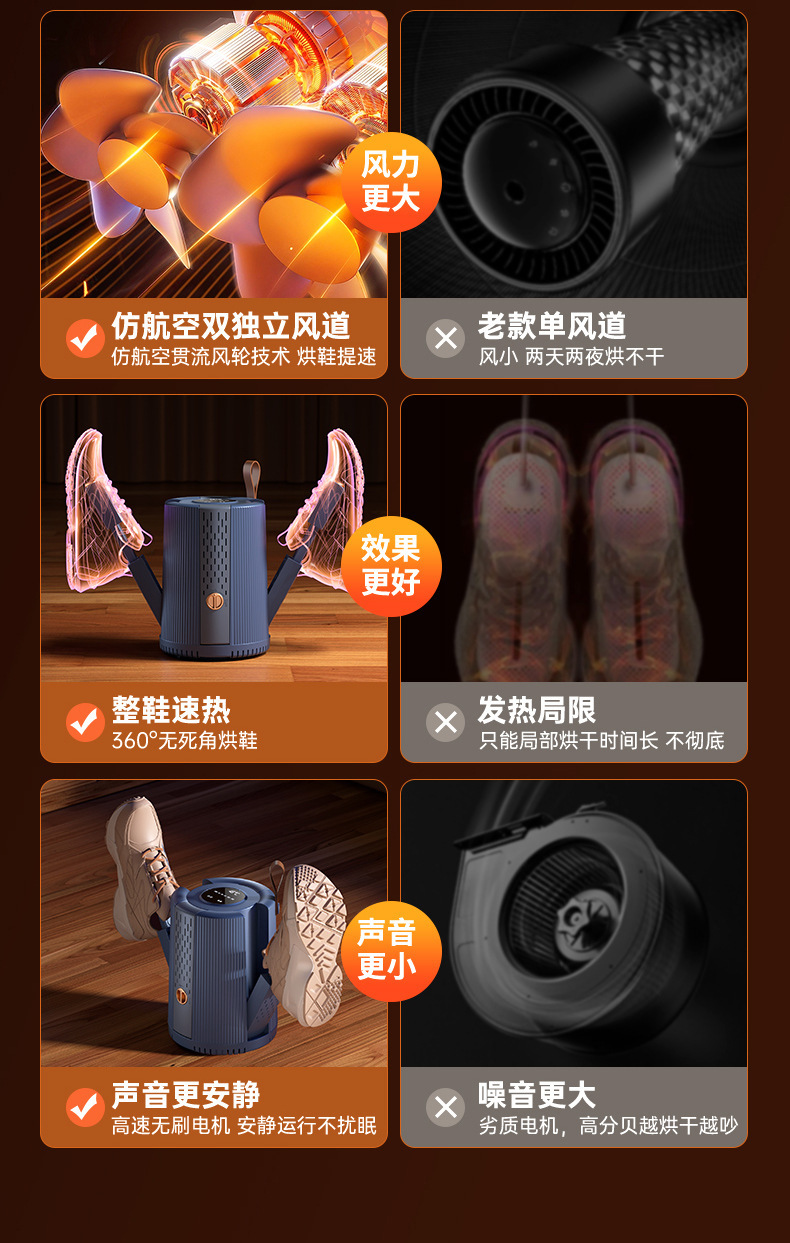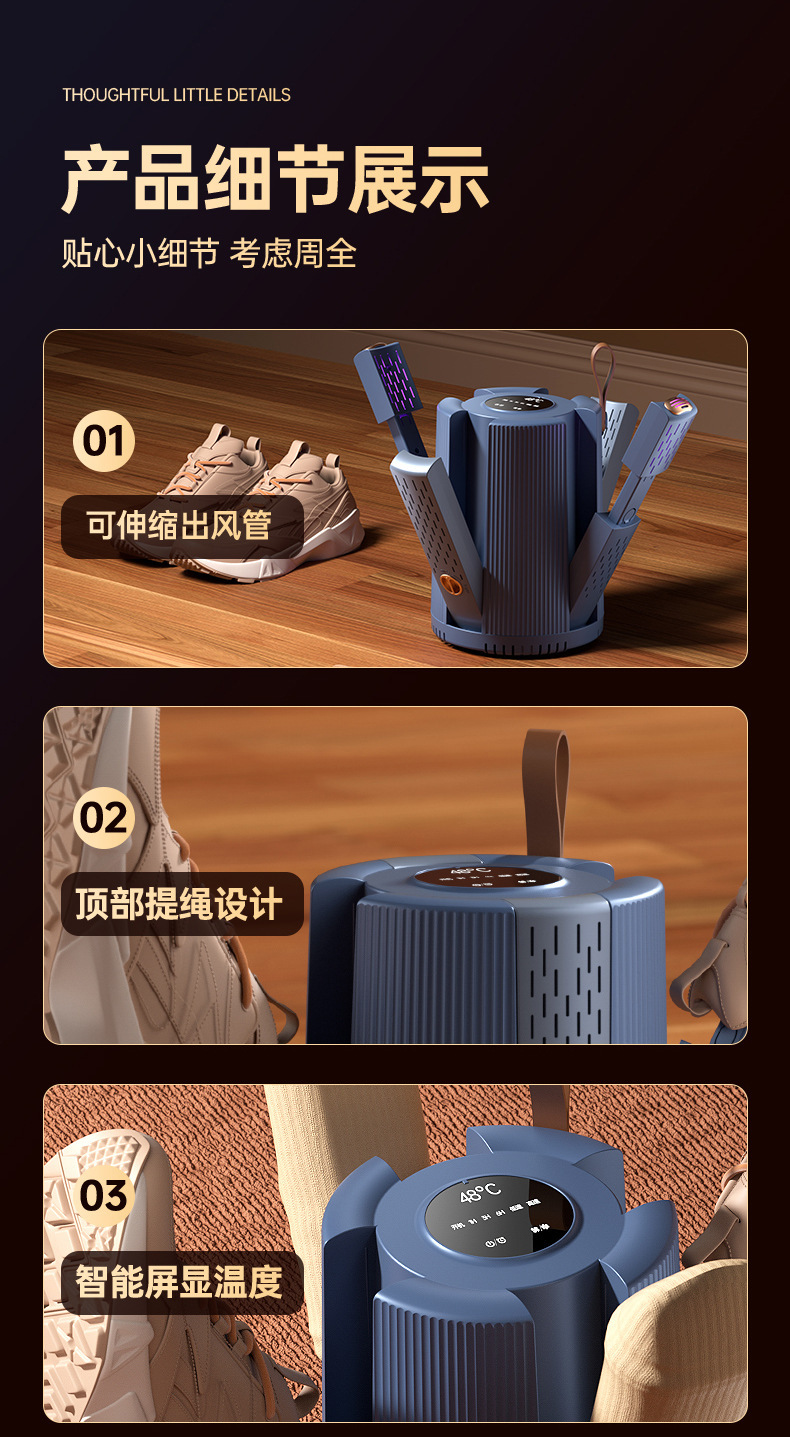 새로운 신발 건조기, 신발 따뜻하게 하는 기계, 4헤드 다기능 신발 건조기, 가정용 접이식 텔레스코픽 탈취제