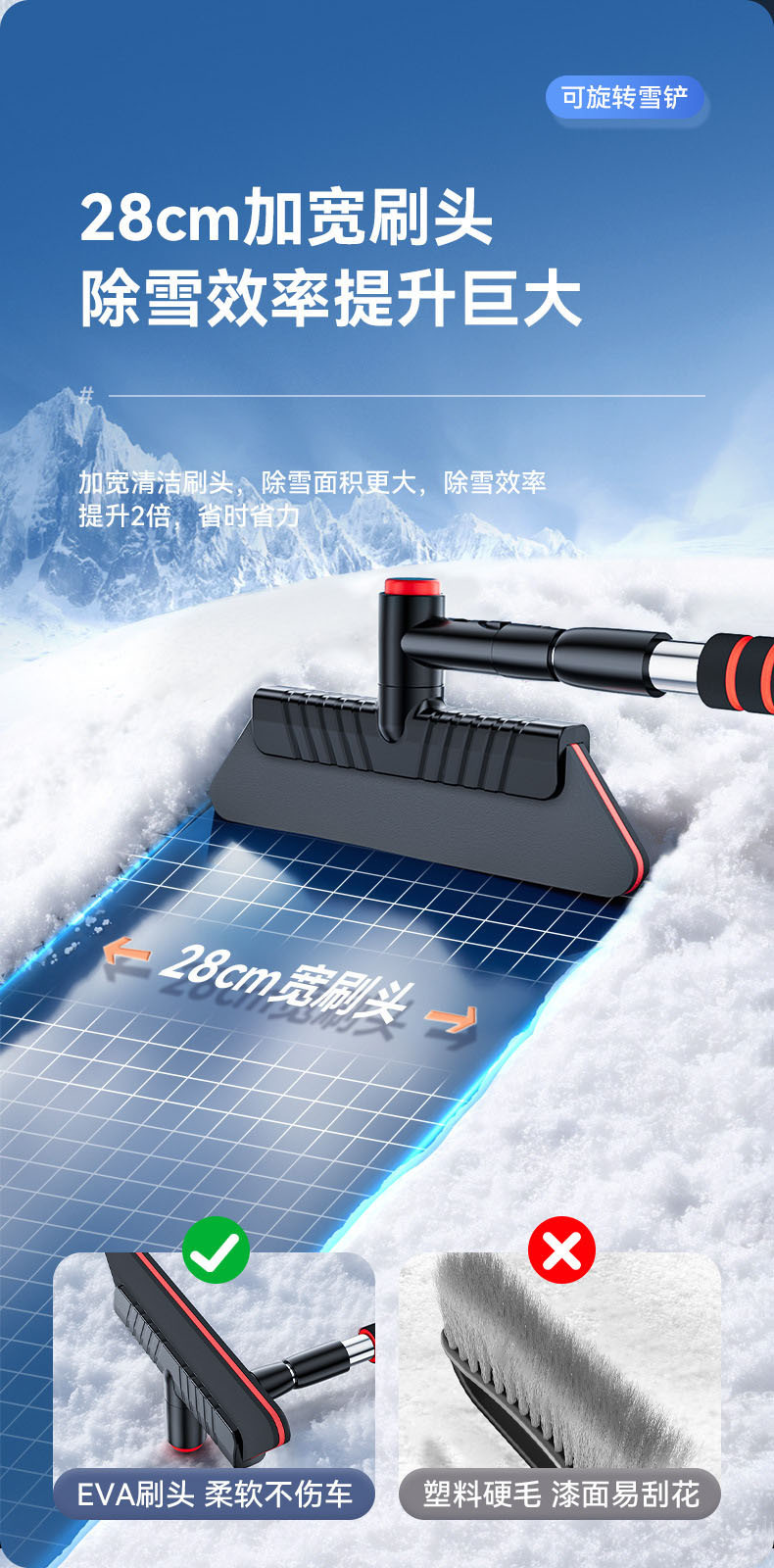 ●除雪刷头:ABS高强度塑料,PVC刷丝耐低温不易折断