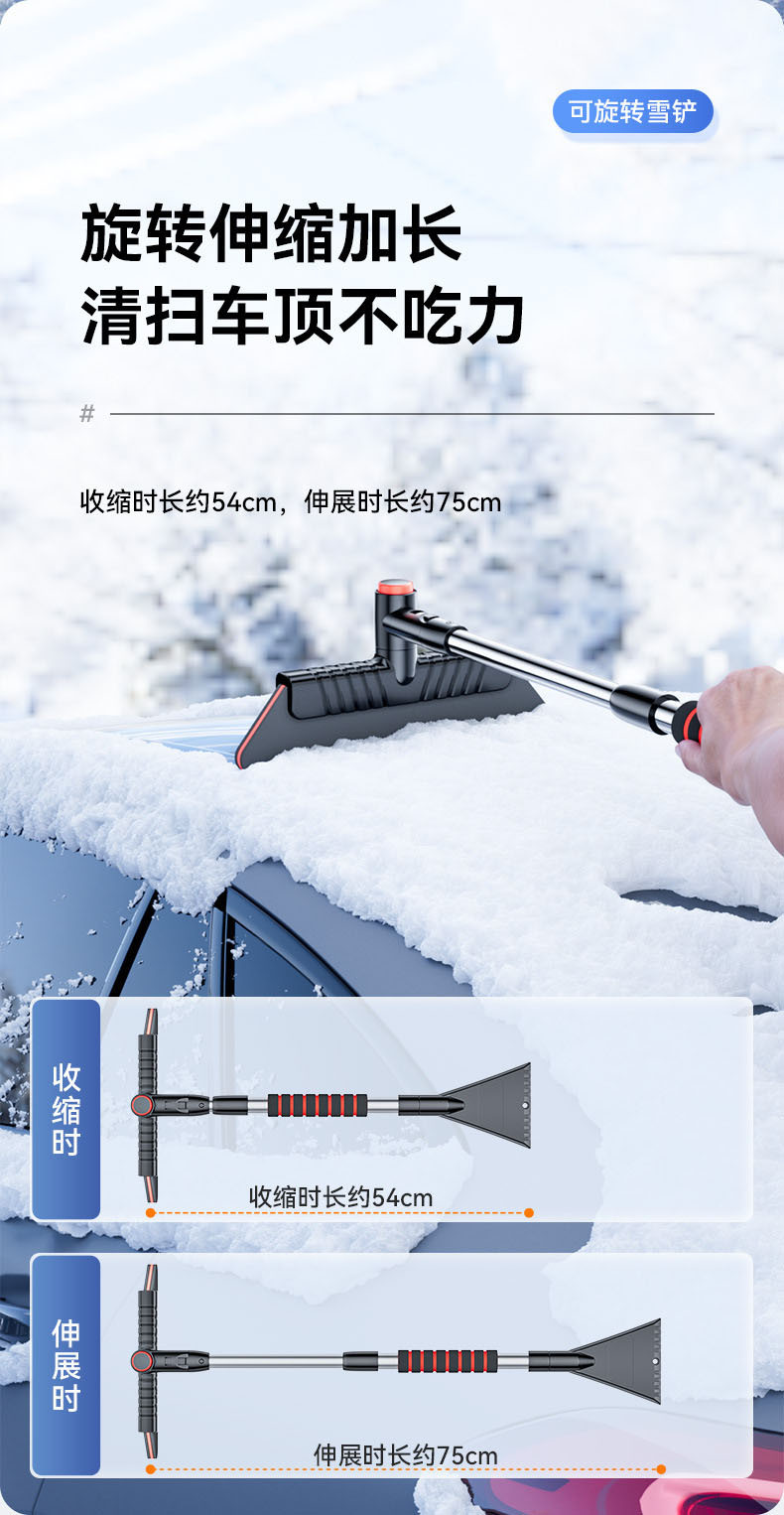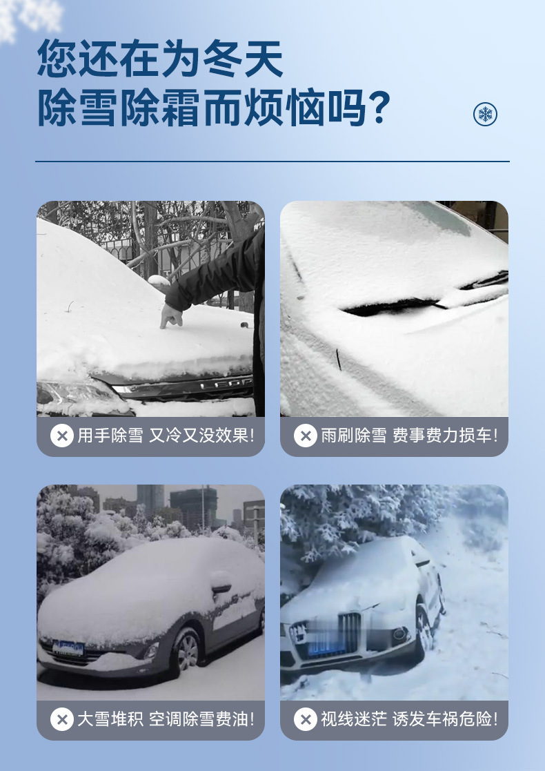 ●除了可以去除汽车上的雪和霜之外,还可以扫刷电动车,自行车以及被大雪被大雪覆盖的房子,玻璃门窗等。