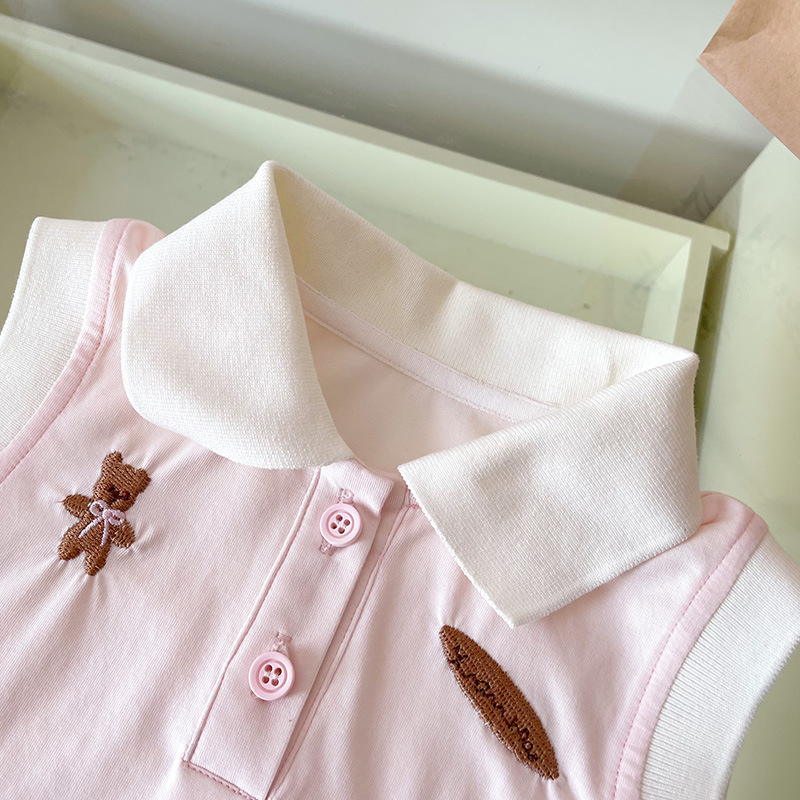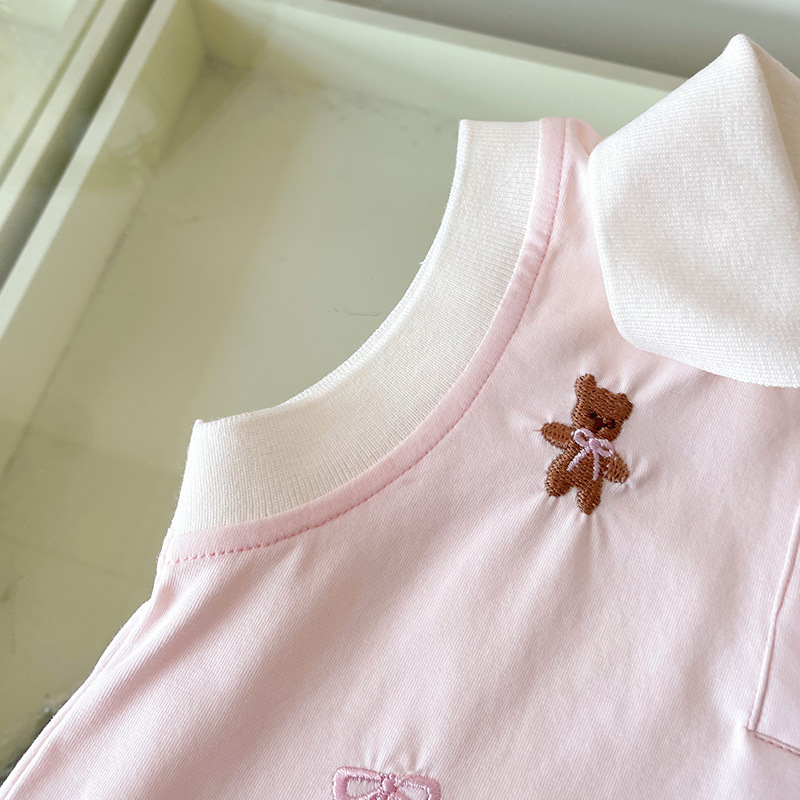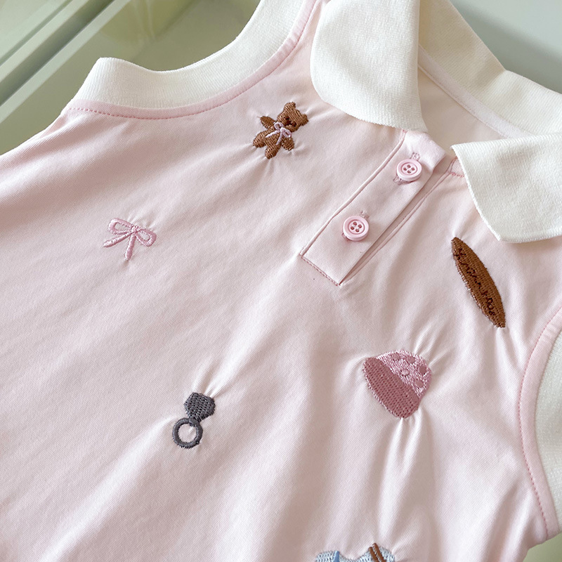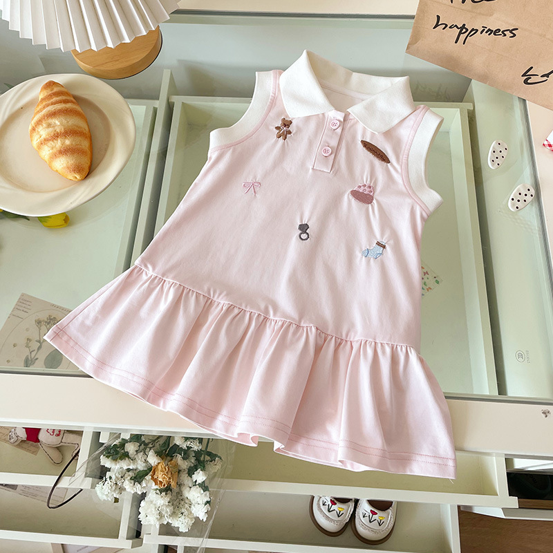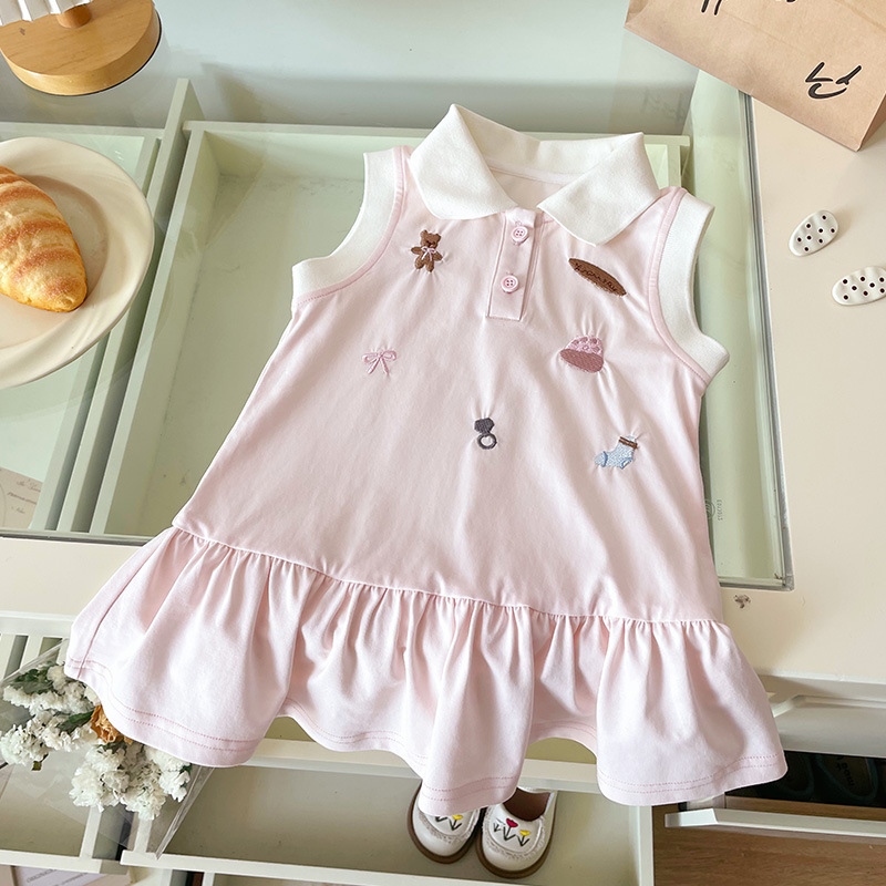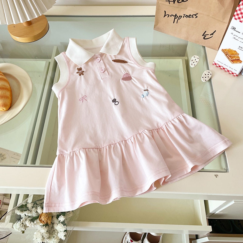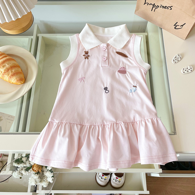 XQ259405 여아 원피스 2025 여름 만화 자수 카라 칼리지 스타일 달콤한 미디 원피스 (재고 있음)스토어 가기