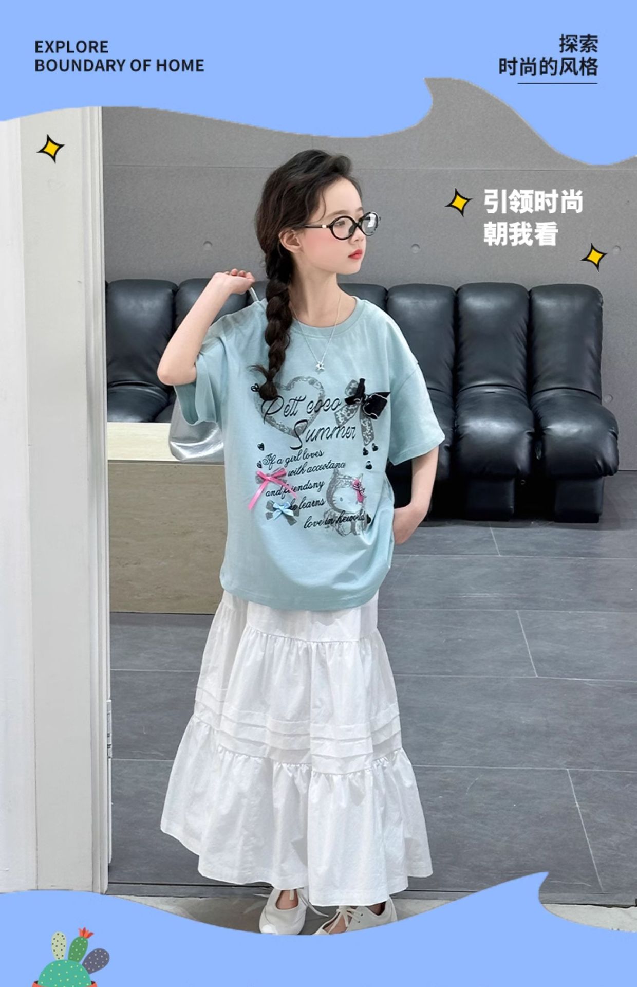 여자 슈퍼 잘 생긴 치마 세트 2025 새로운 스타일 소녀 여름 큰 소녀 여름 원피스 한국 원피스스토어 가기