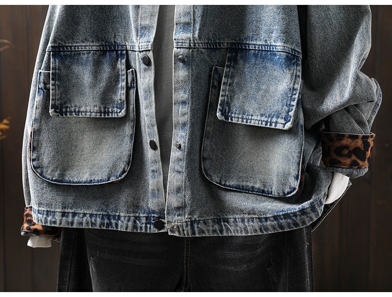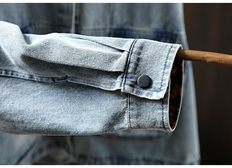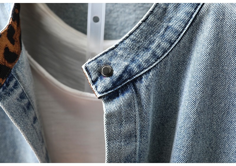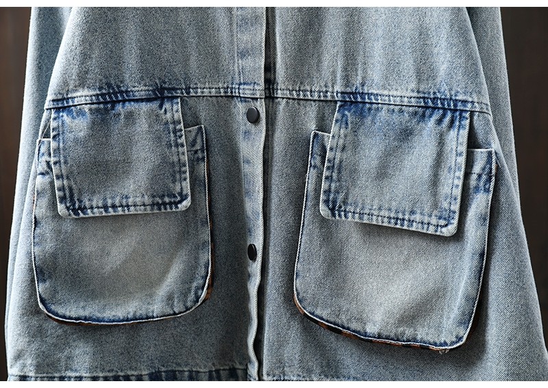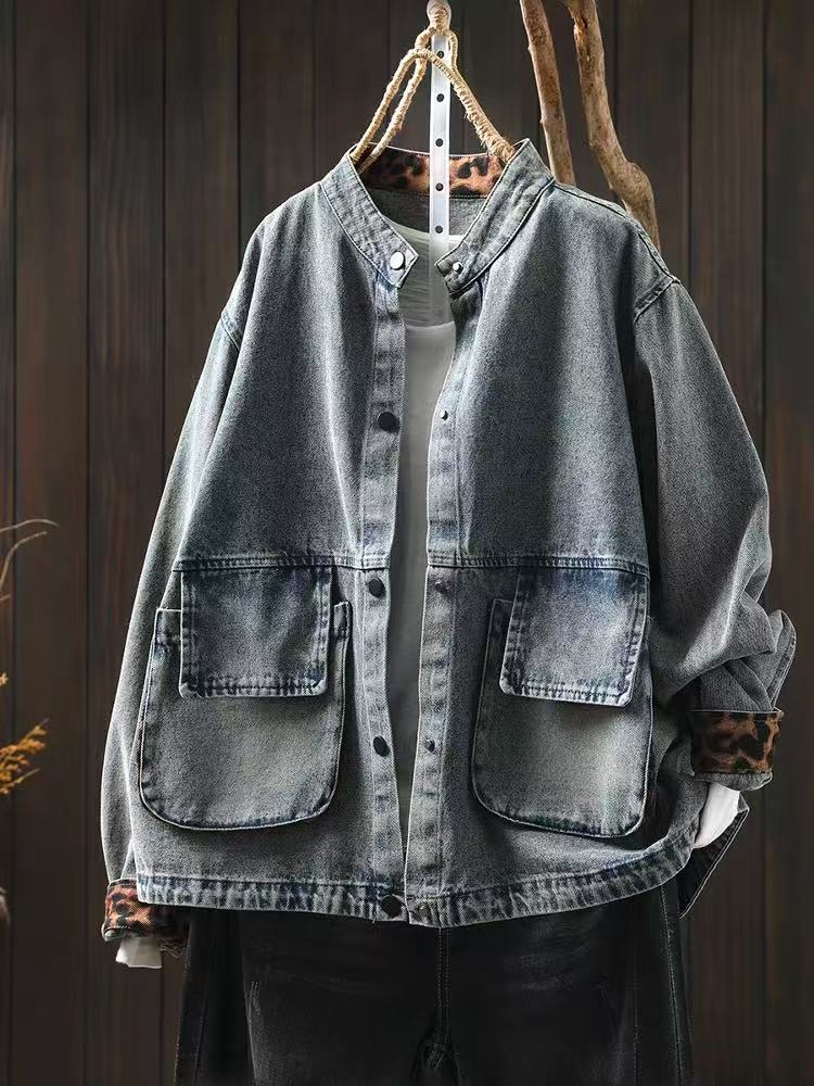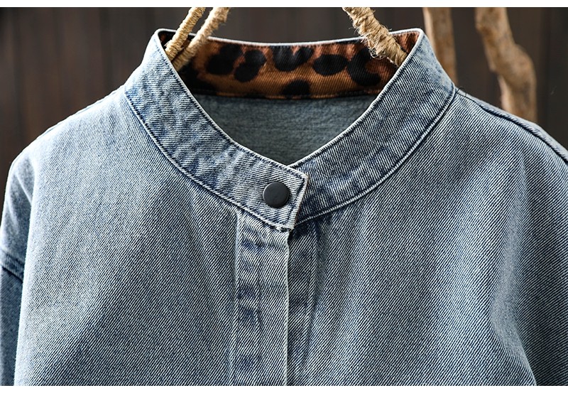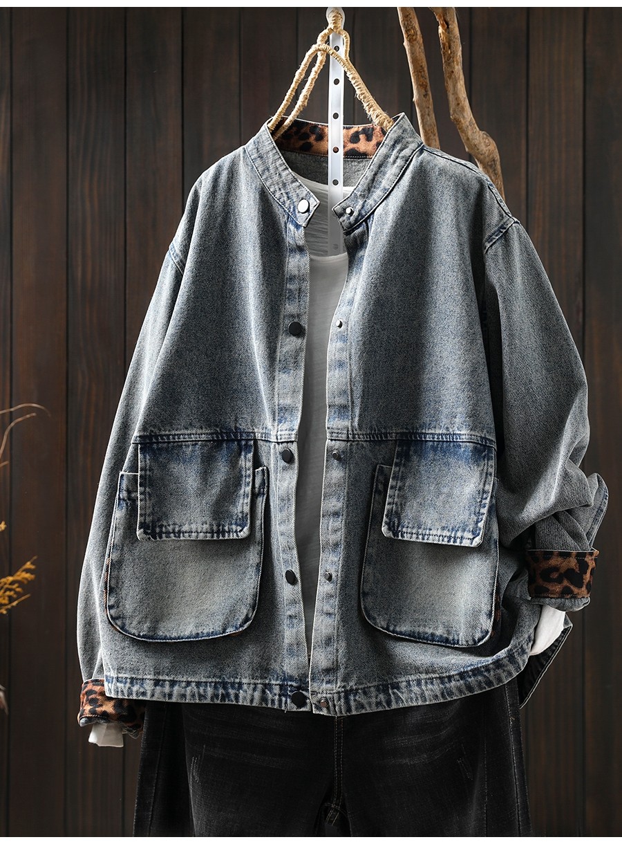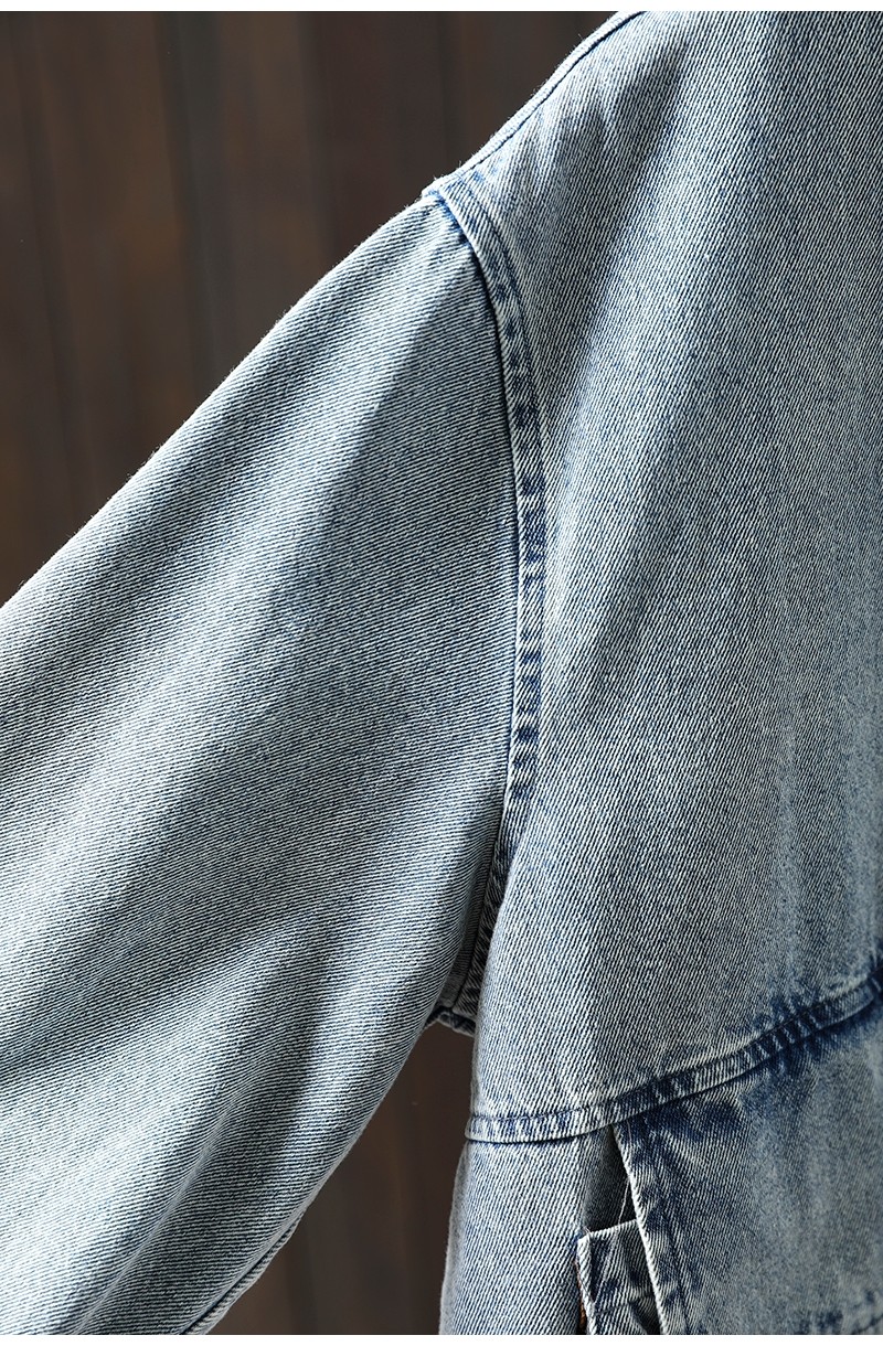 봄 새로운 대형 포켓 스탠드 칼라 세척 데님 코트 여성 느슨한 캐주얼 50022