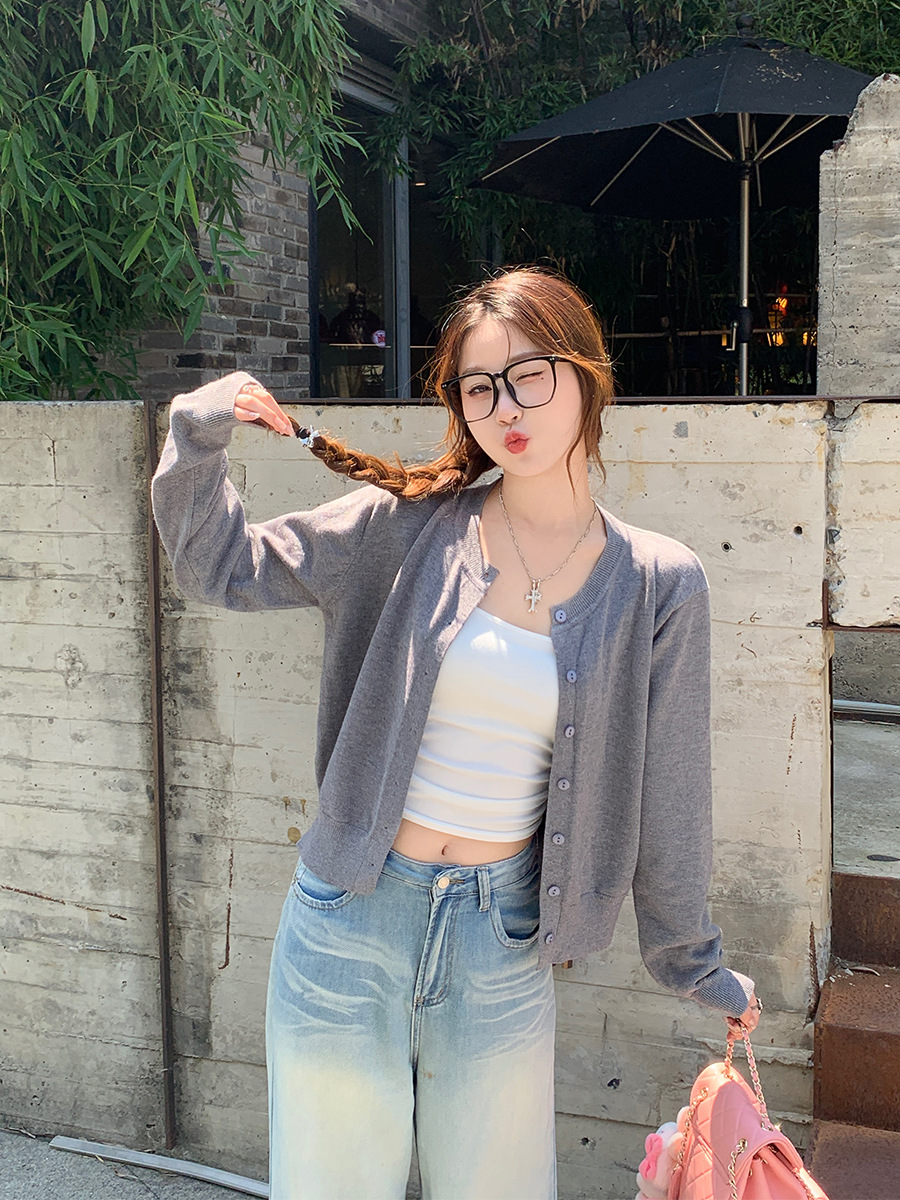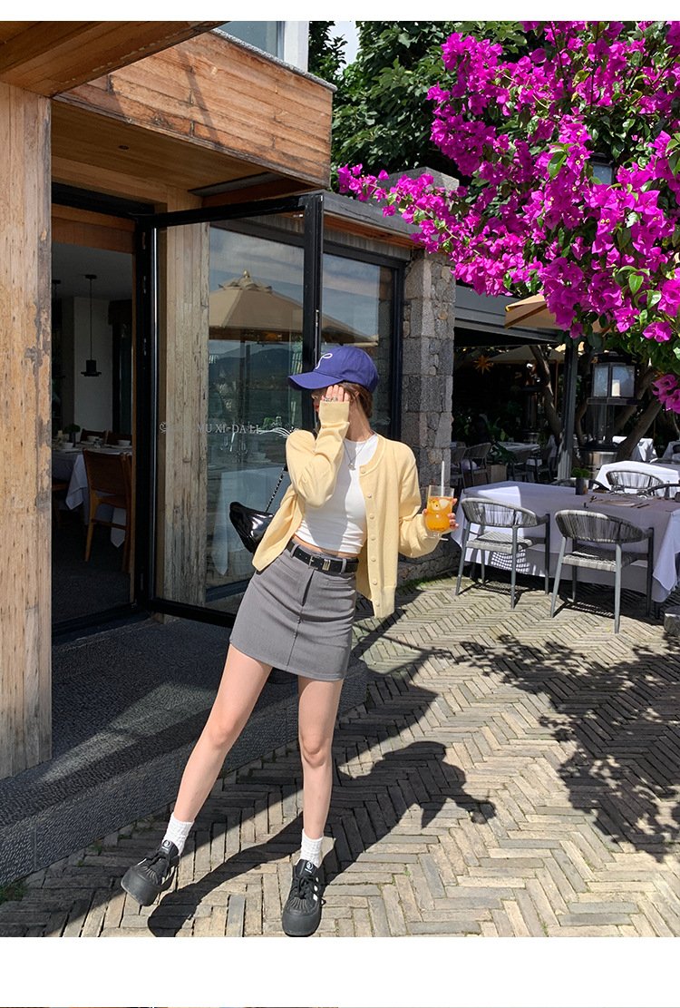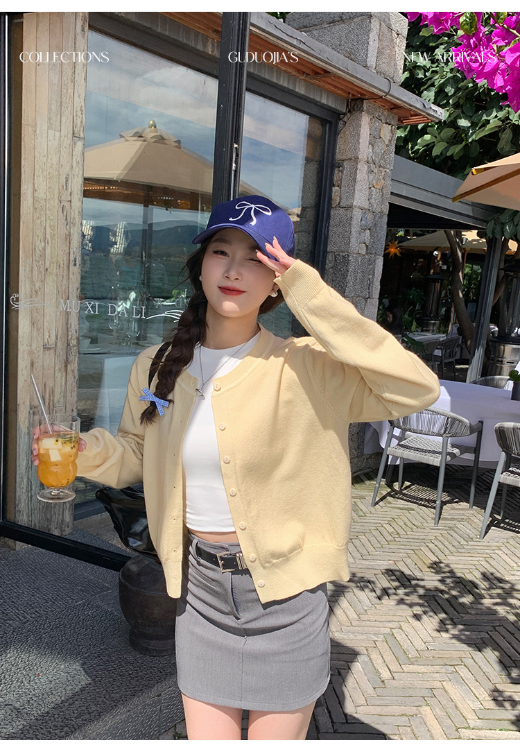 니트 코트 카디건 여성 가을 인기 2025 새로운 노란색 코트 얇은 봄과 가을 스웨터 느슨한스토어 가기