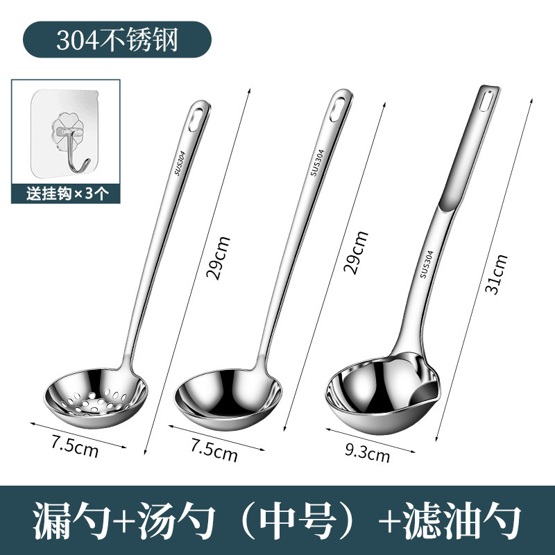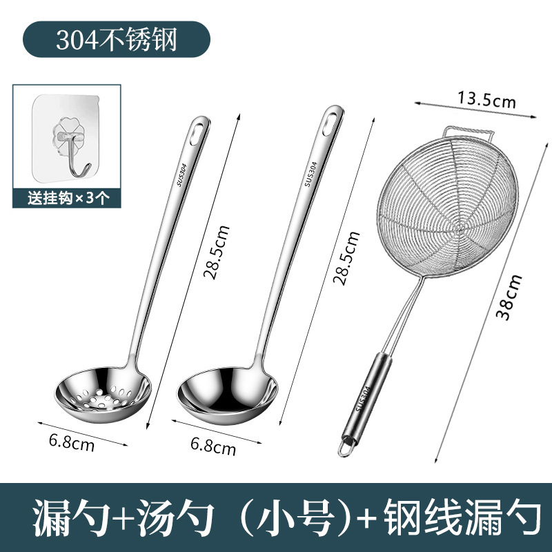 • [특대 304 스틸] 작은 수프 스푼 + 작은 소쿠리 + 그리스 스푼, 후크 3개 포함