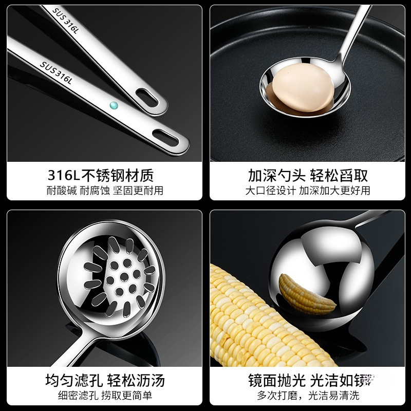 • [두꺼운 316 스틸] 수프 스푼 + 소쿠리 + 스틸 와이어 소쿠리, 프리 후크 3개