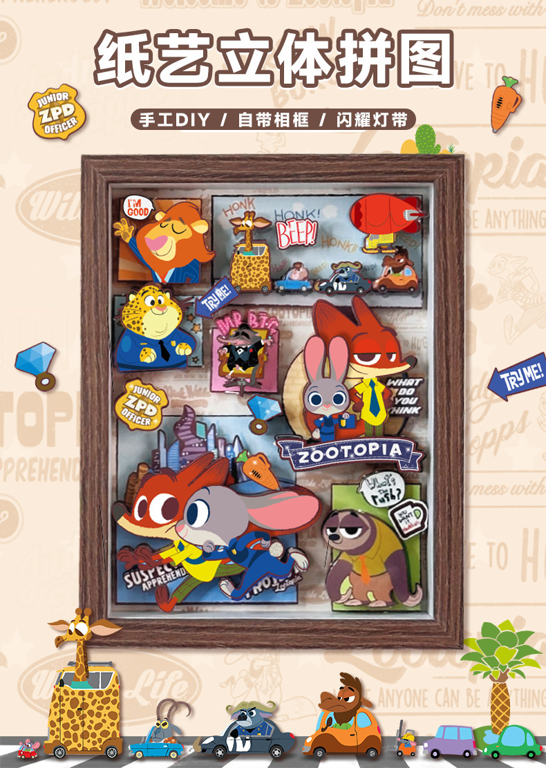 미친 동물 도시 3D 사진 프레임 그림 수제 창조적 인 DIY 퍼즐 어린이 교육 창조적 인 장난감 쇼핑몰스토어 가기