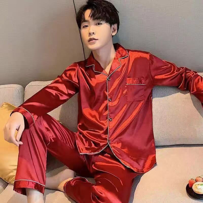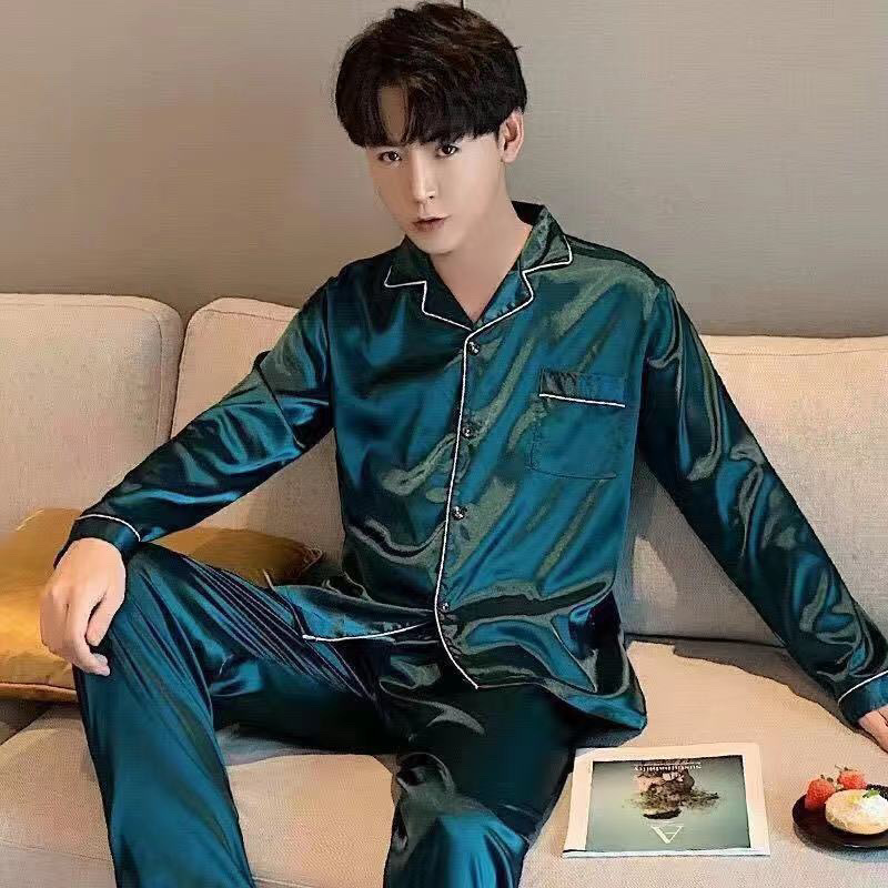봄과 가을 얼음 실크 남성 잠옷, 초경량, 멋진 긴팔 바지, 대형 루즈하고 부드러운 홈웨어 세트