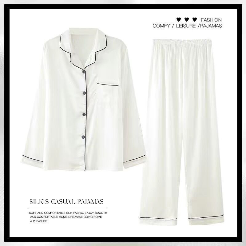 봄과 가을 얼음 실크 남성 잠옷, 초경량, 멋진 긴팔 바지, 대형 루즈하고 부드러운 홈웨어 세트스토어 가기
