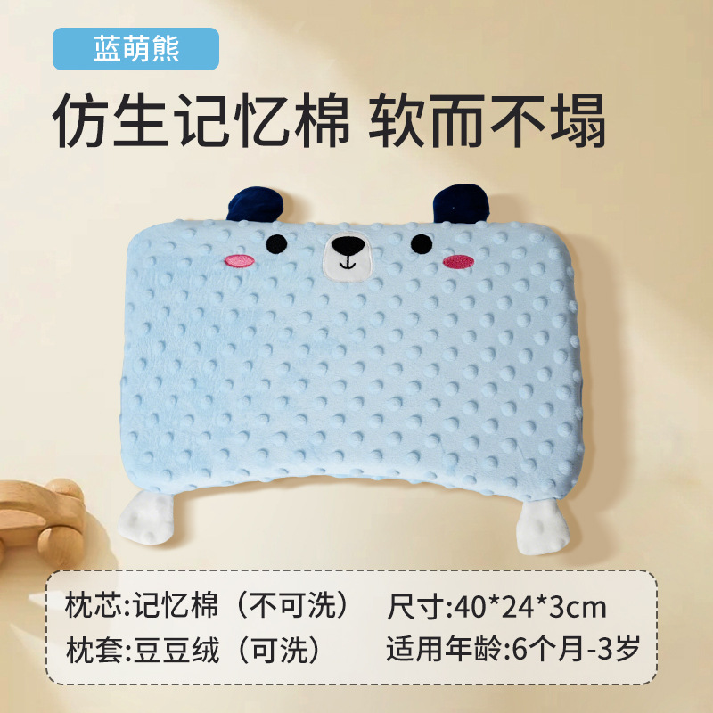 • 0-6개월丨플랫베개 1.5丨콩 벨벳 베개커버丨블루 귀여운 곰