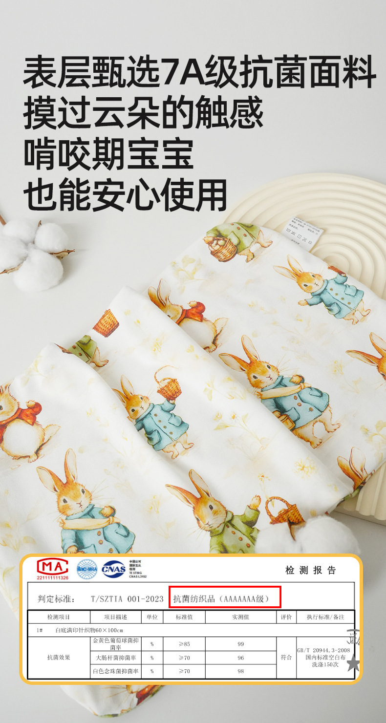 • 0-6개월丨플랫베개 1.5丨A급 면베개커버丨귀여운 토끼 파티