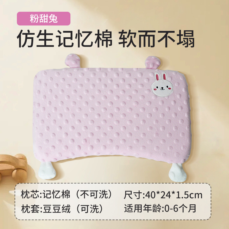 • 0-6개월丨플랫베개 1.5丨콩 벨벳 베개커버丨핑크 스위트 래빗