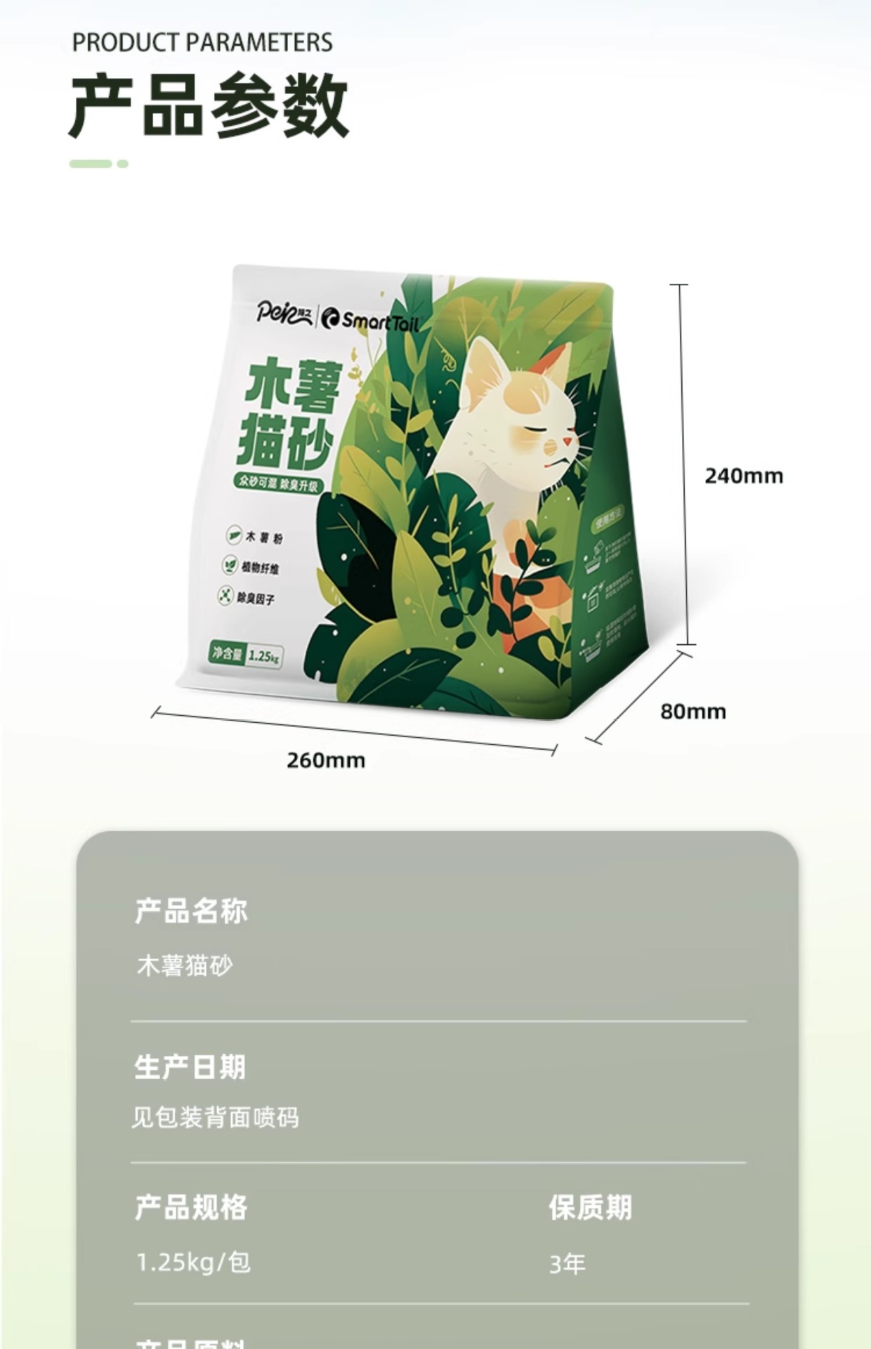 • 순수 카사바 고양이 모래 1.25kg