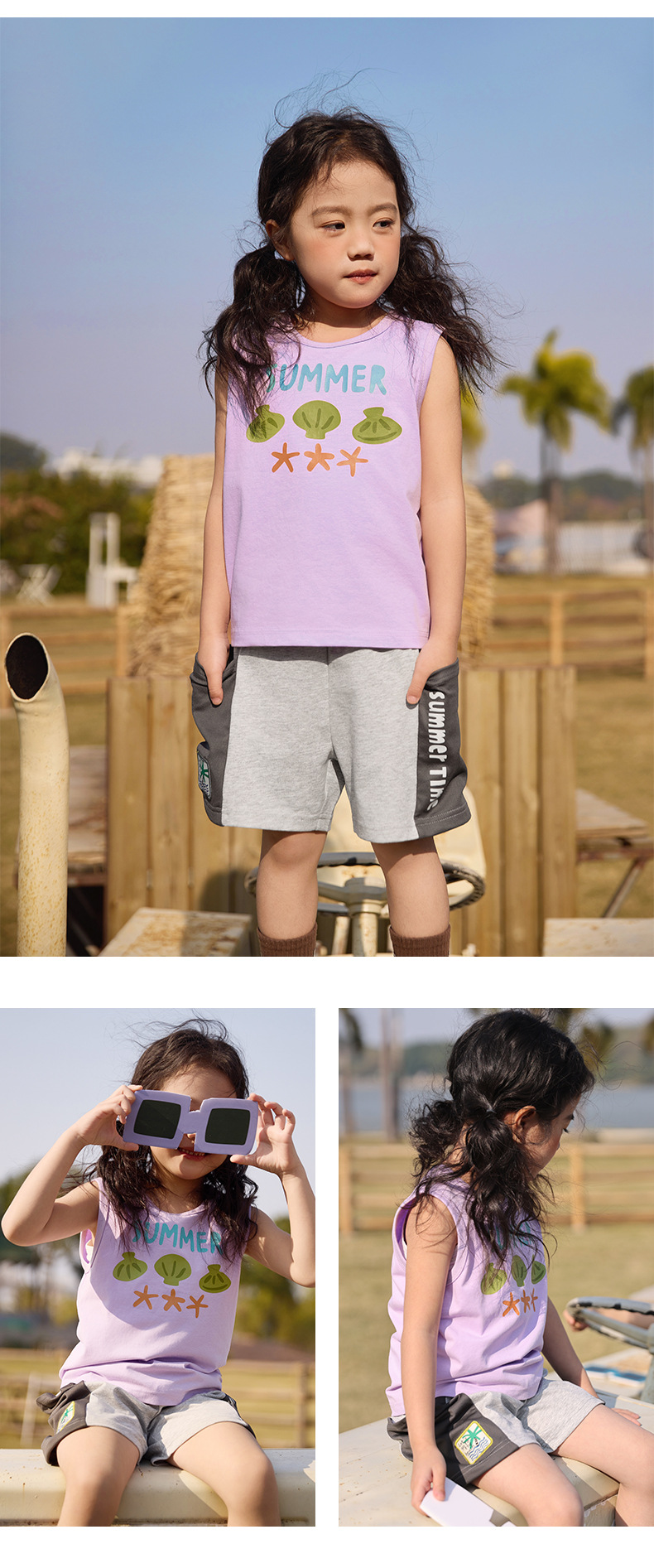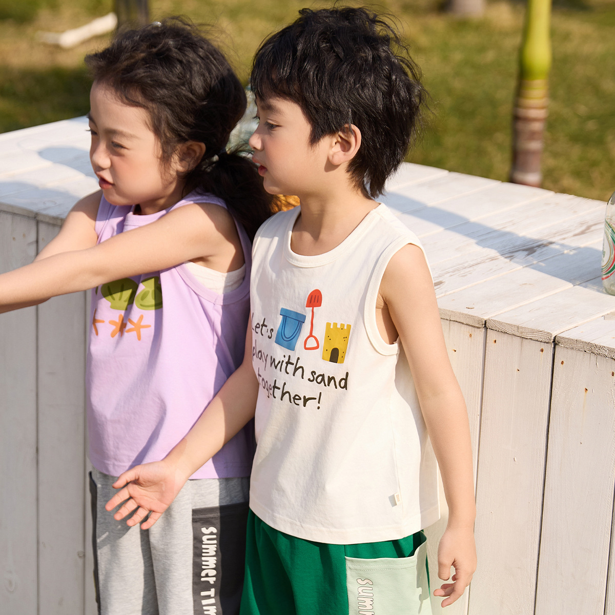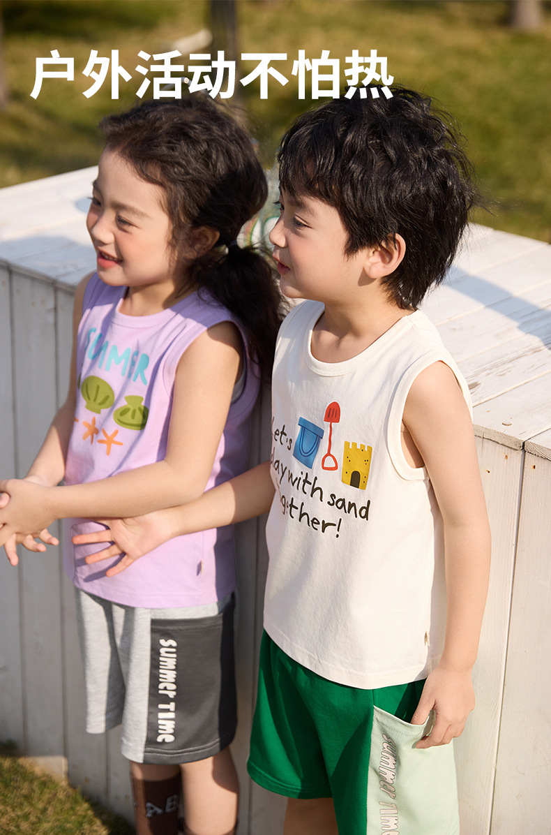 BBQB 어린이 여름 조끼 소년의 멋진 민소매 최고 여성 라운드 넥 만화 스포츠 조끼 캐주얼 베이스스토어 가기