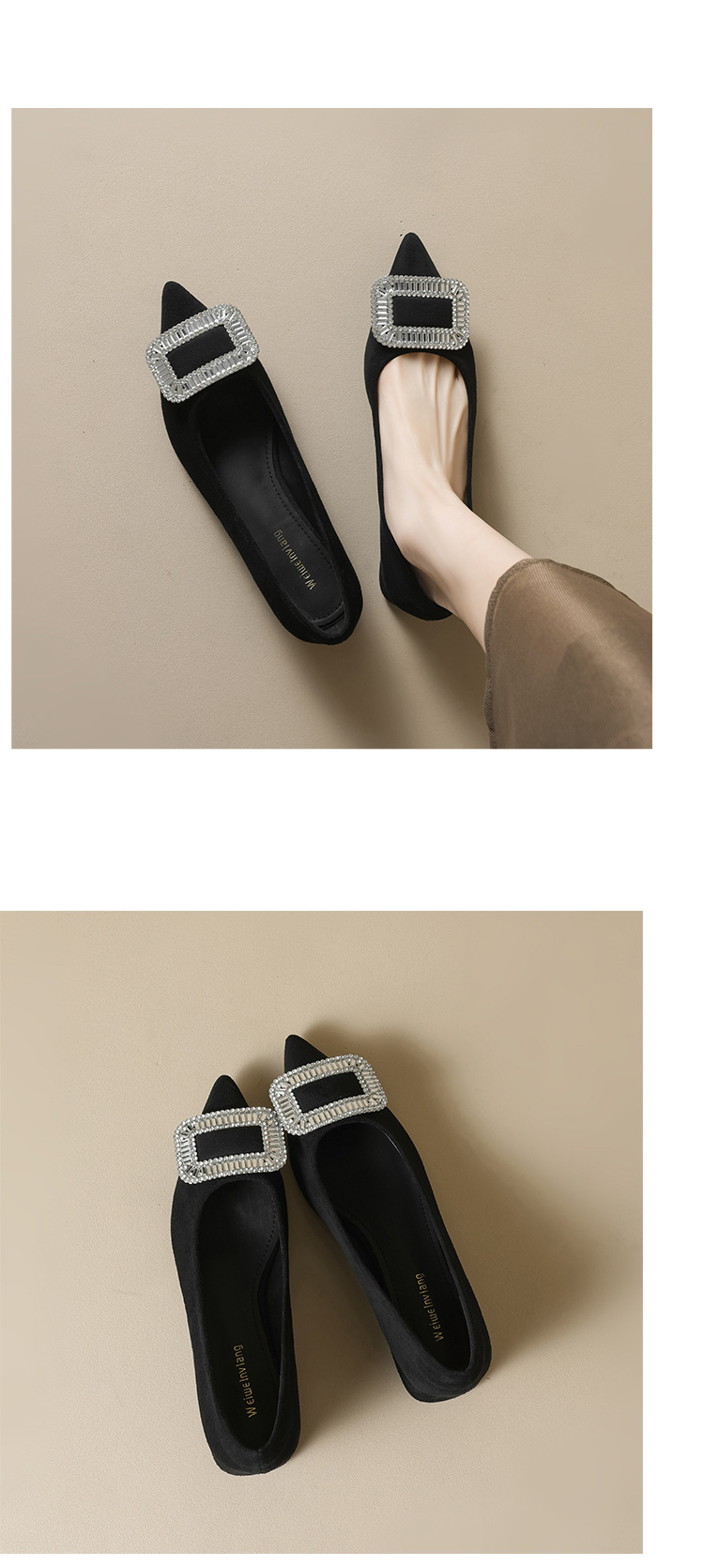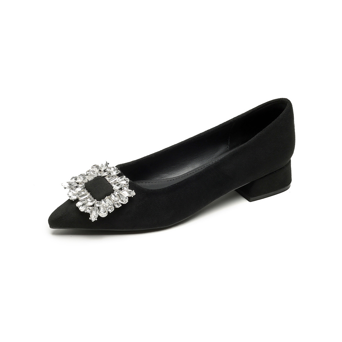 뾰족코 굵은 굽 여성용 구두, 스커트와 함께 착용, 2025 봄 가을, 사각 버클, 얕은 굽, 로우힐, 여성용 패션 만능 구두스토어 가기