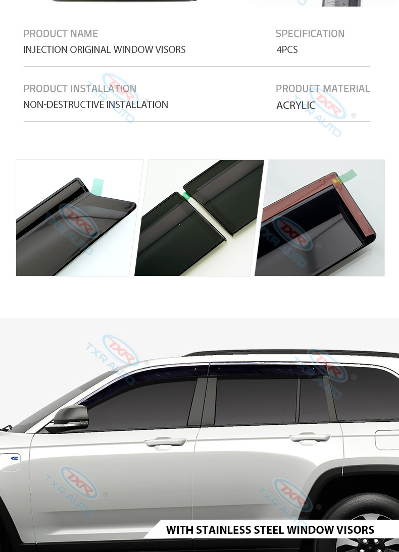 • Grand Cherokee 2011-2020 스테인레스 스틸 가장자리가 있는 특수 오리지널 웨더 실드 4피스 팩