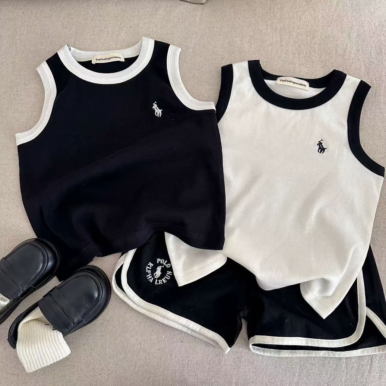 어린이 스포츠 세트 남자 얇은 2025 여름 아기 조끼 농구 의류 어린이 반바지 투피스 여성의 통기성스토어 가기