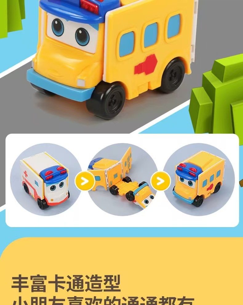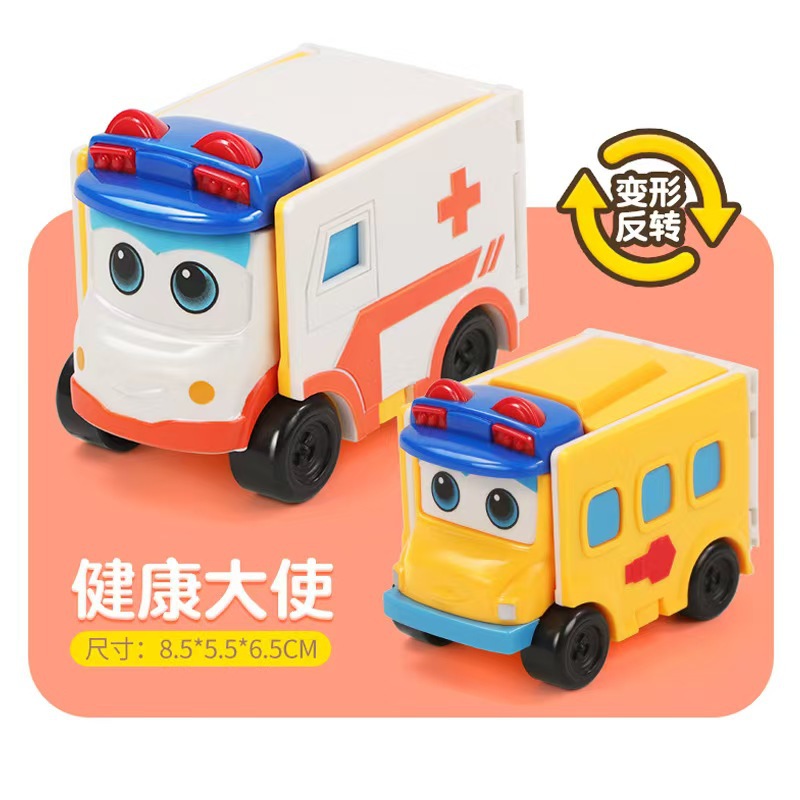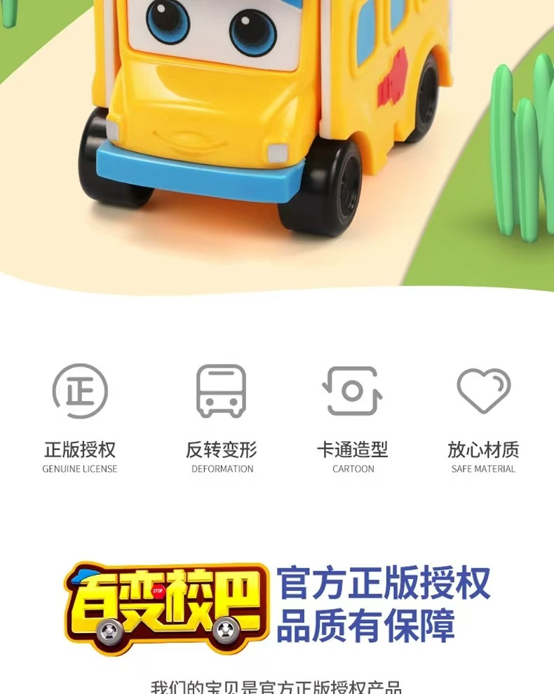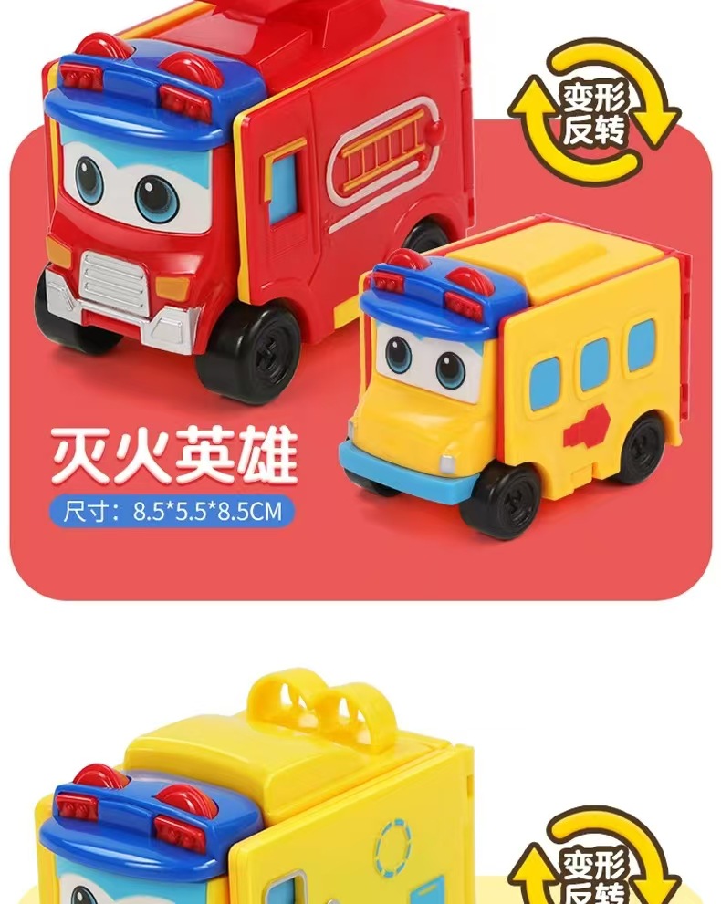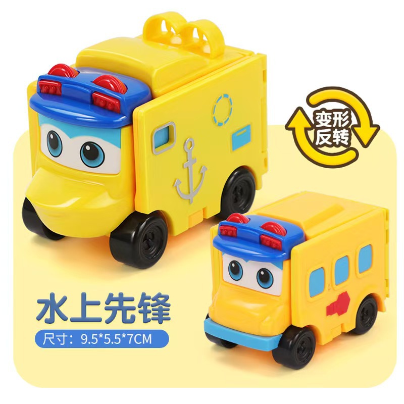 정품 버라이어티 스쿨 버스 장난감 어린이 역방향 자동차 양면 역방향 자동차 변형 로봇 플립 자동차 소년 세트