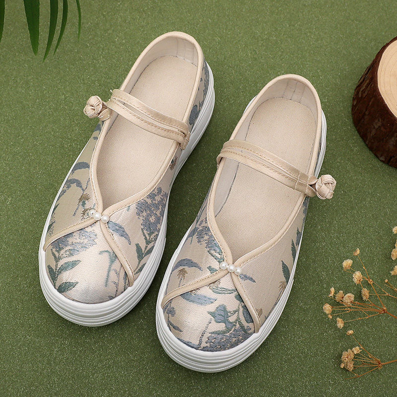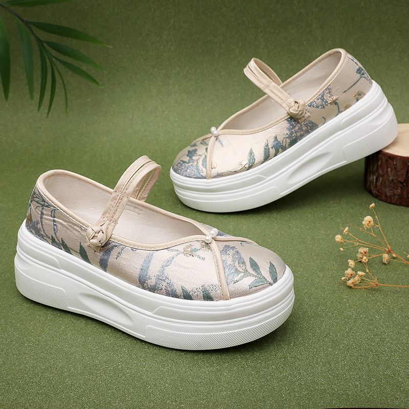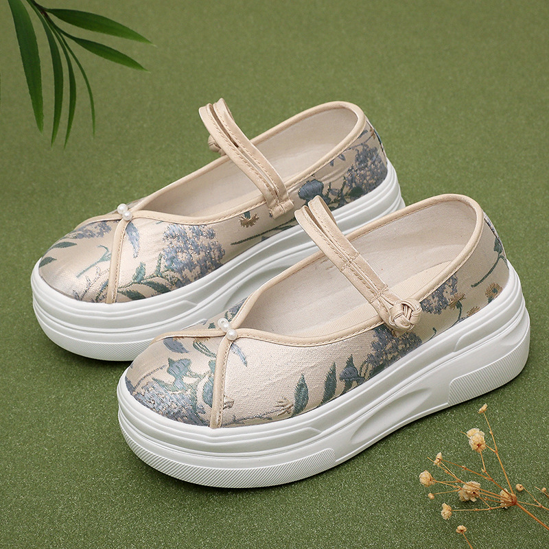 봄과 가을 2025 새로운 도착 고대 스타일 부드러운 밑창 두꺼운 한푸 신발 말 얼굴 스커트 캐주얼 운동화