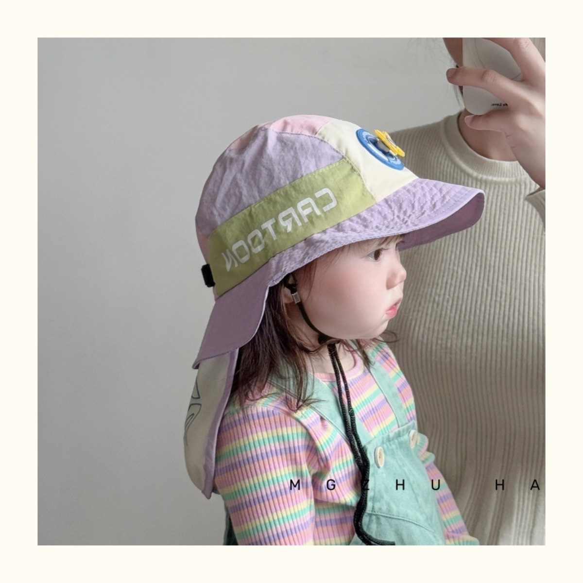 어린이 모자 봄과 가을 얇은 소년 모자 여름 아기 통기성 태양 모자 컬러 매칭 어깨 모자 소년 소녀를위한 트렌디