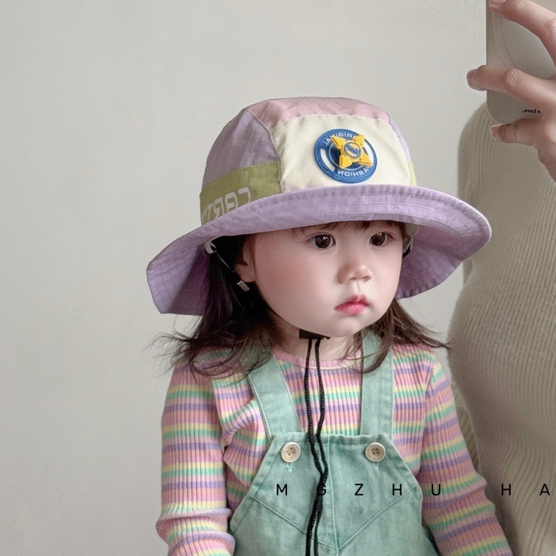 어린이 모자 봄과 가을 얇은 소년 모자 여름 아기 통기성 태양 모자 컬러 매칭 어깨 모자 소년 소녀를위한 트렌디스토어 가기
