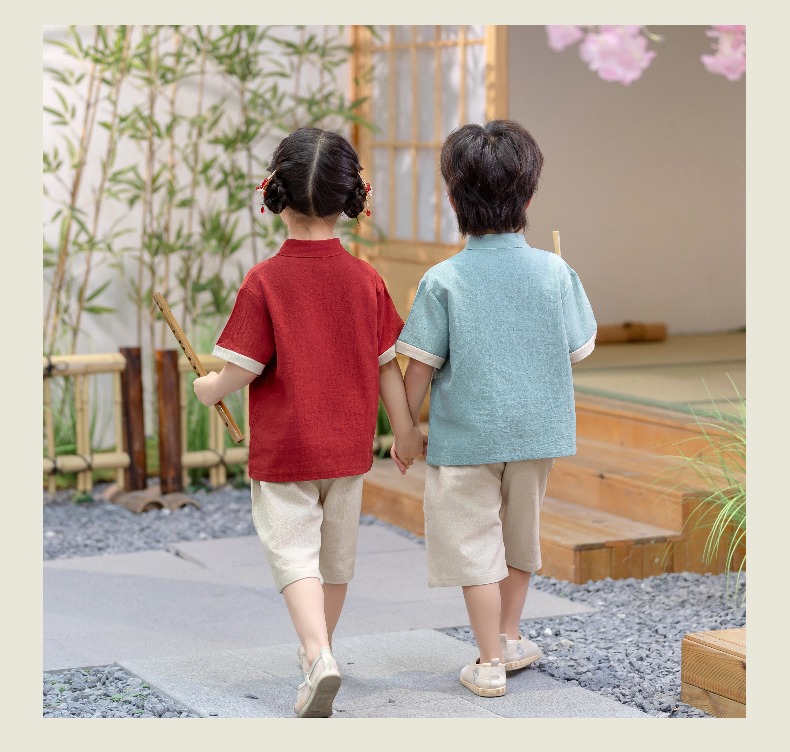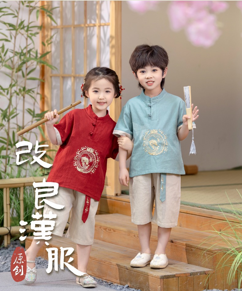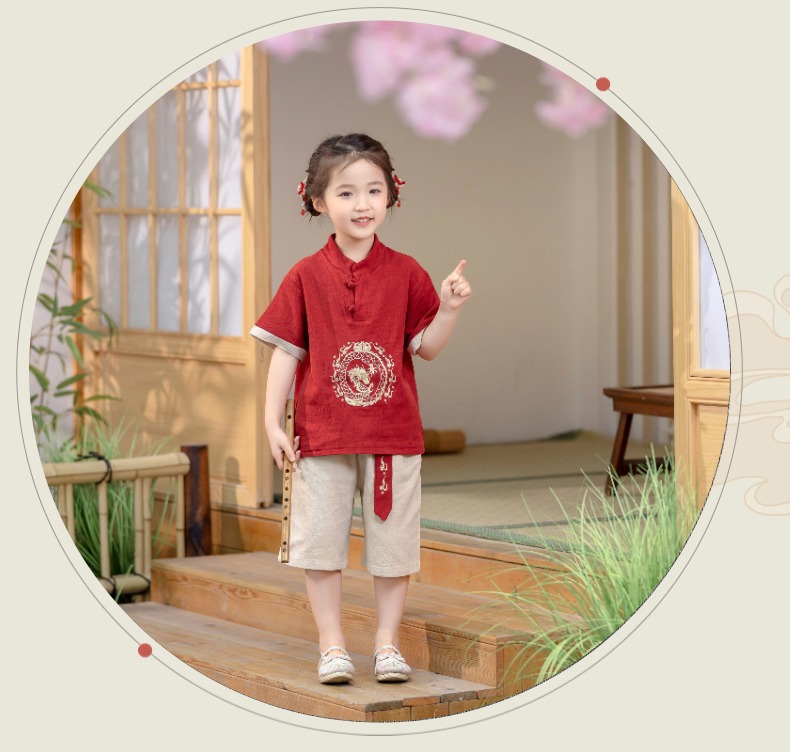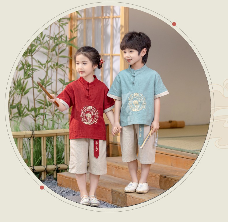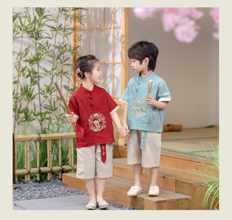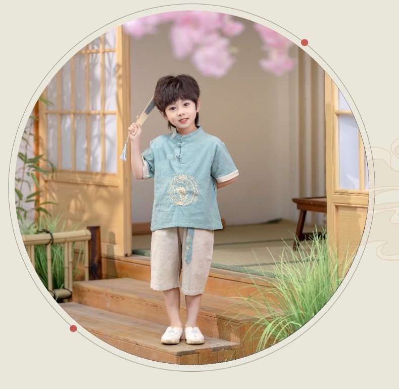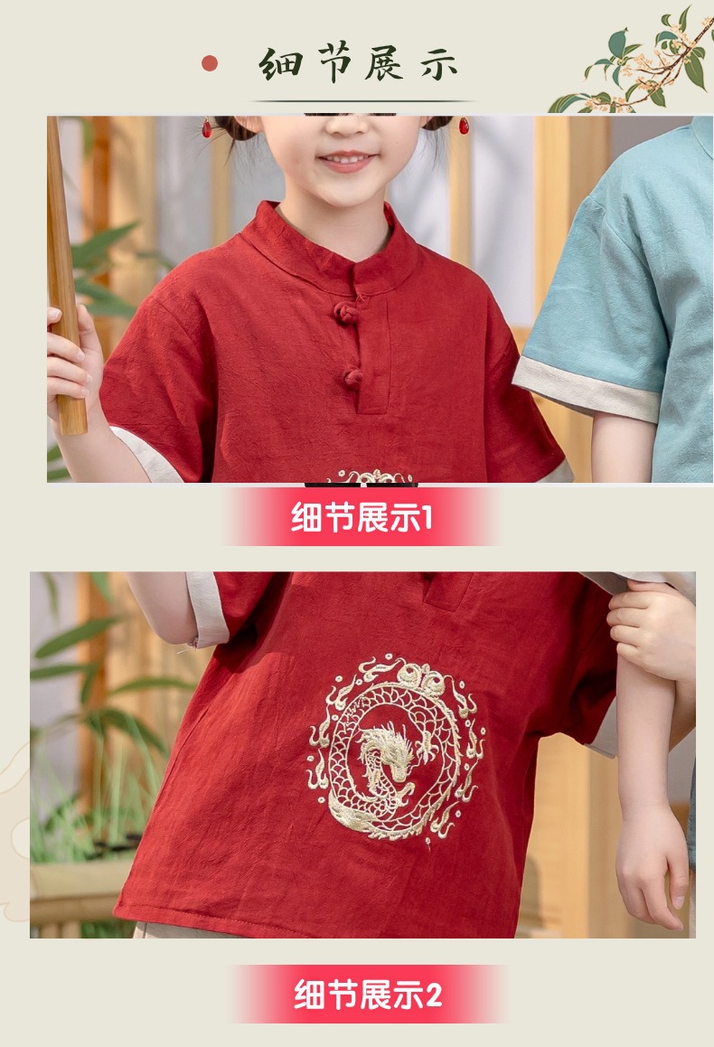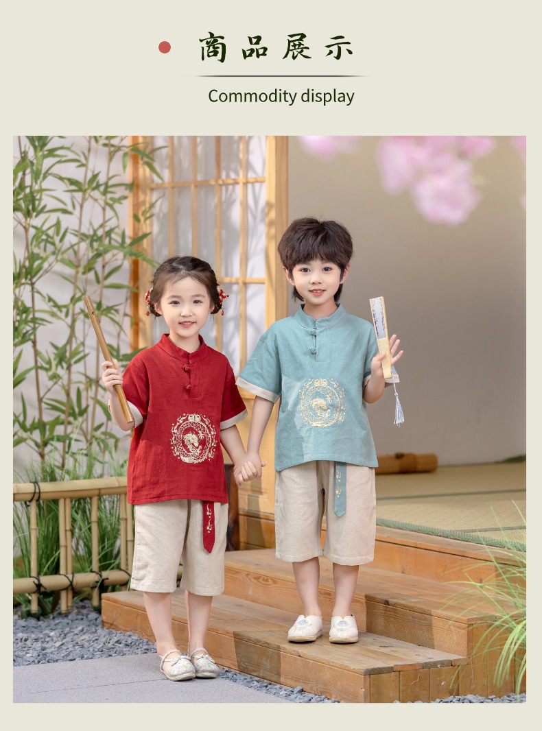 소년 한푸 여름 얇은 중국 스타일 어린이 고대 비용 공연 세트 탕 세트 아기 1 세 원피스 면 리넨 세트스토어 가기
