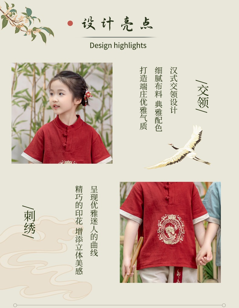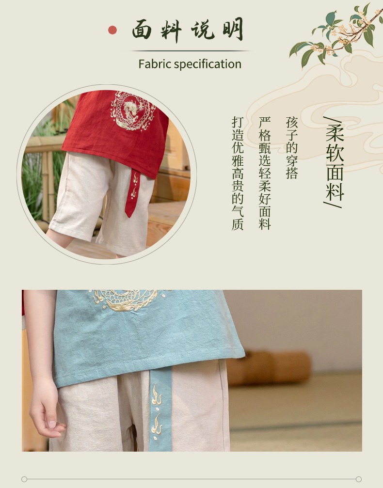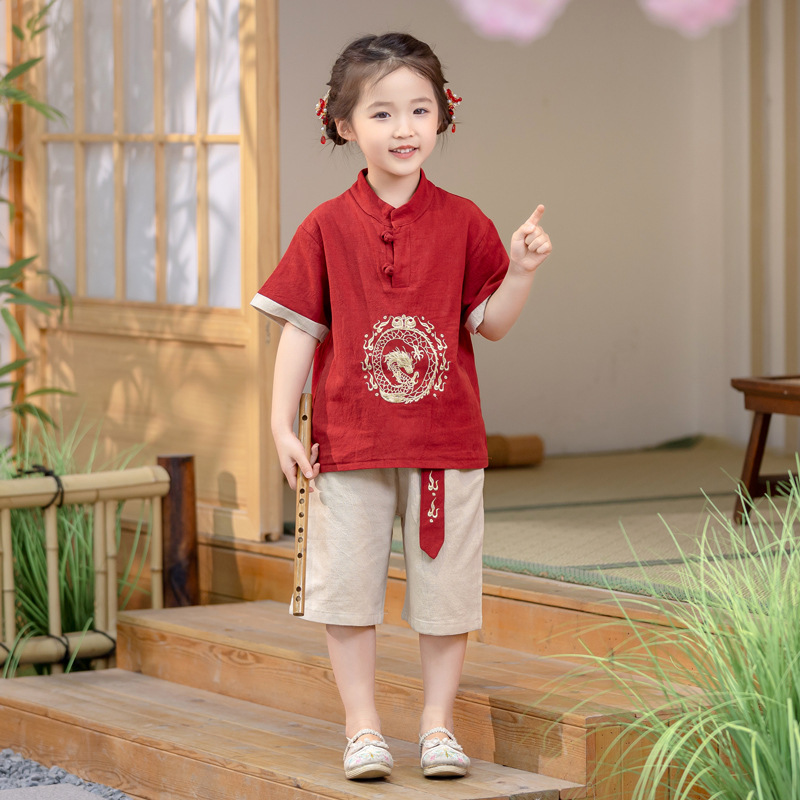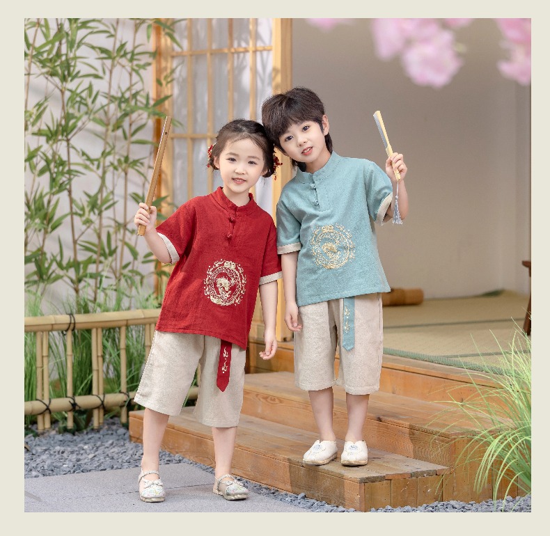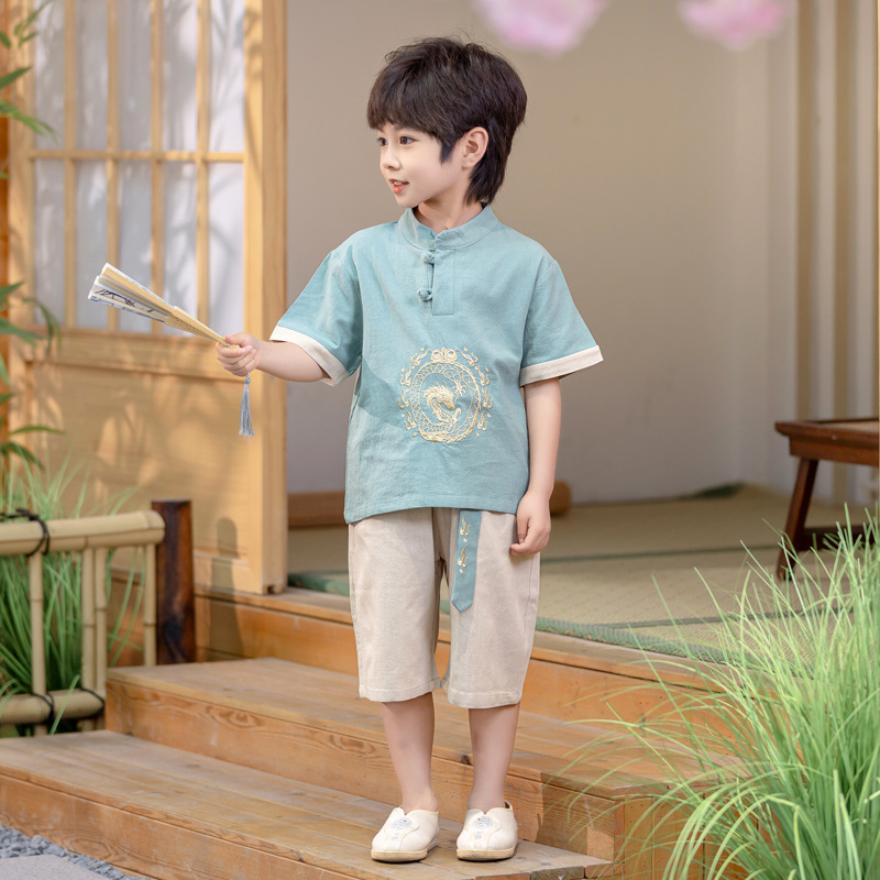 소년 한푸 여름 얇은 중국 스타일 어린이 고대 비용 공연 세트 탕 세트 아기 1 세 원피스 면 리넨 세트