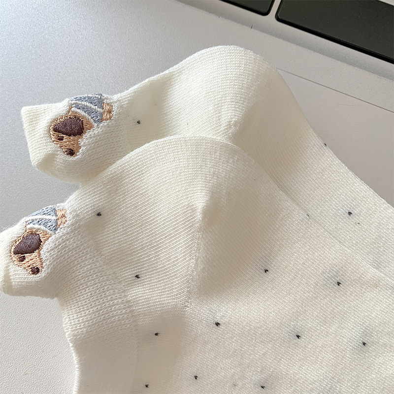 봄과 여름 양말 여성 한식 웨이브 도트 윈드 힐 자수 닥스 훈트 개 패션 빗질면 여성 양말