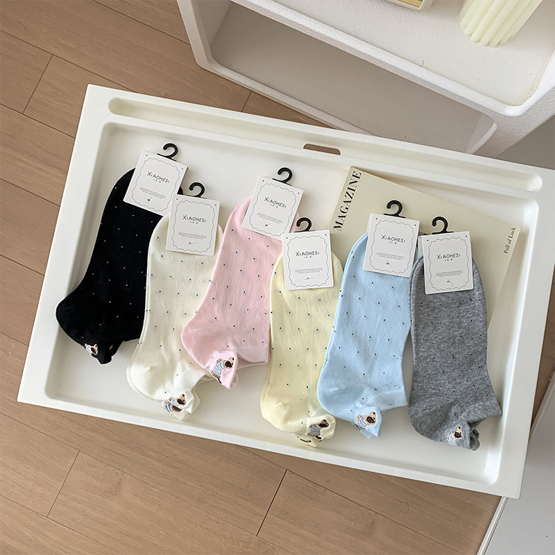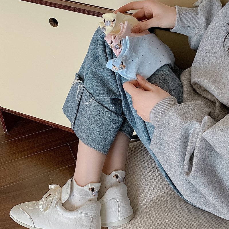 봄과 여름 양말 여성 한식 웨이브 도트 윈드 힐 자수 닥스 훈트 개 패션 빗질면 여성 양말스토어 가기