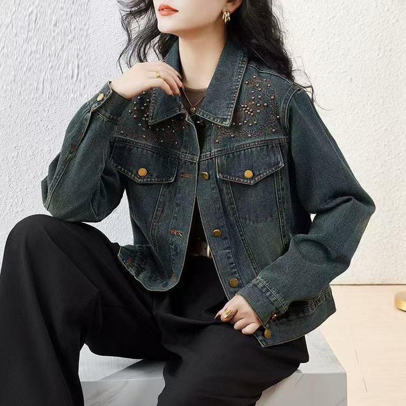 데님 코트 여성의 봄과 가을 2025 새로운 하이 센스 작은 짧은 레트로 느슨한 캐주얼 재킷 코트