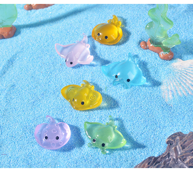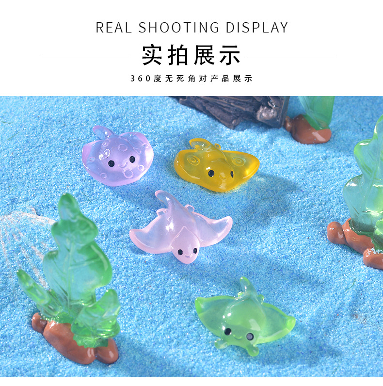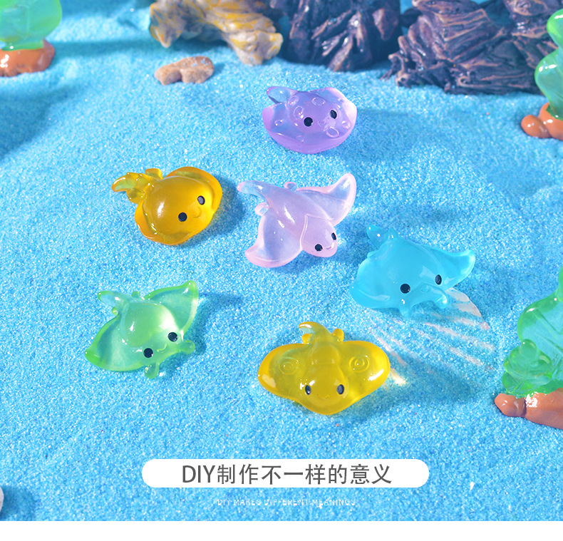 국경 마이크로 풍경 창조적 인 귀여운 빛나는 평면 평면 물고기 수족관 물고기 탱크 장식 액세서리 수지 미니 작은 장식품