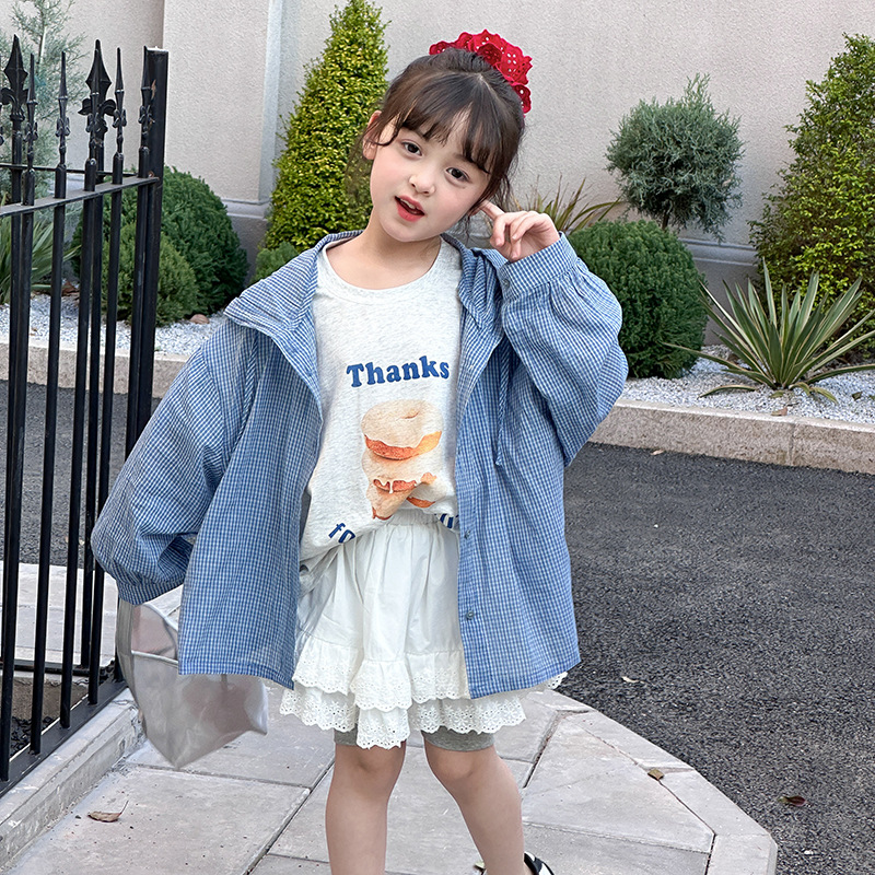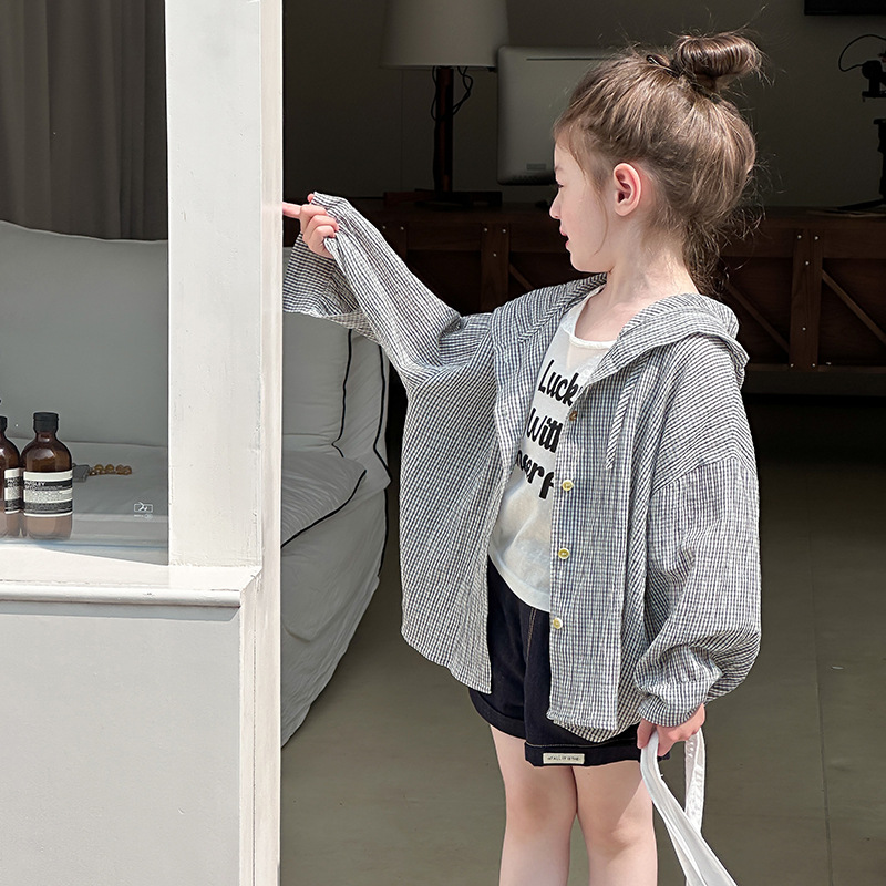남학생과 여학생을위한 Emo Beibei 어린이 한국식 느슨한 격자 무늬 후드 재킷