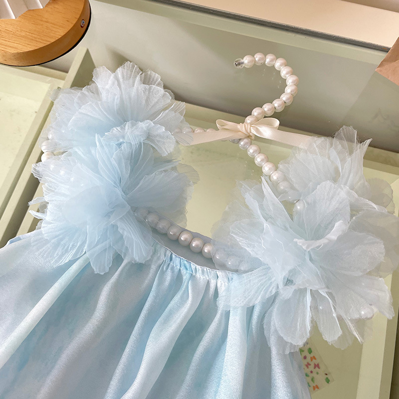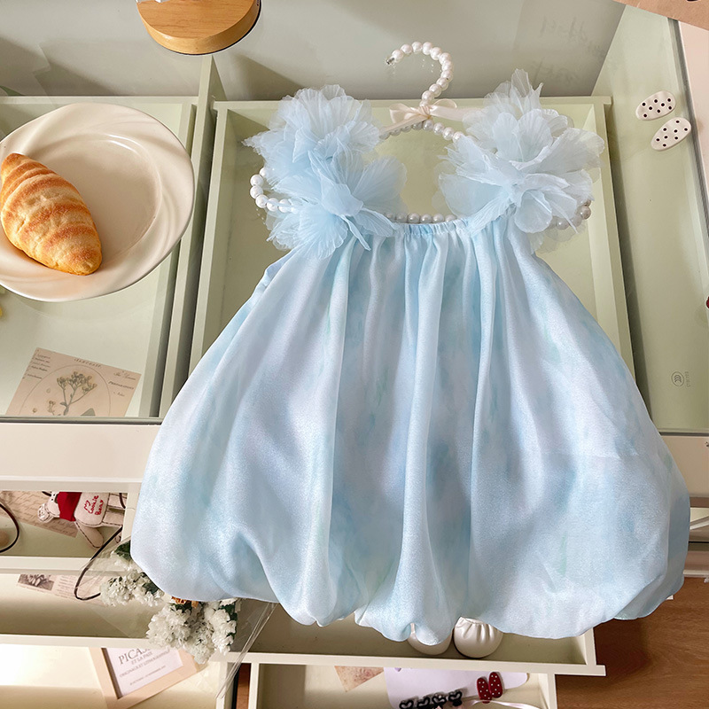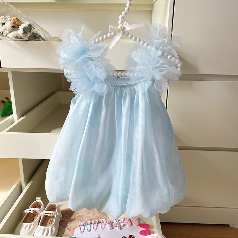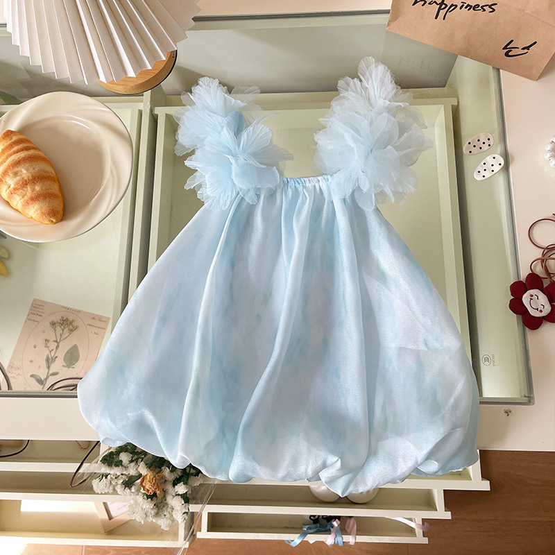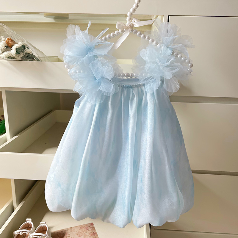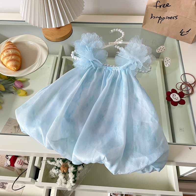[재고] XQ259159 소녀 원피스 2025 여름 새로운 슈퍼 요정 메쉬 스트랩 디자인 유행스토어 가기