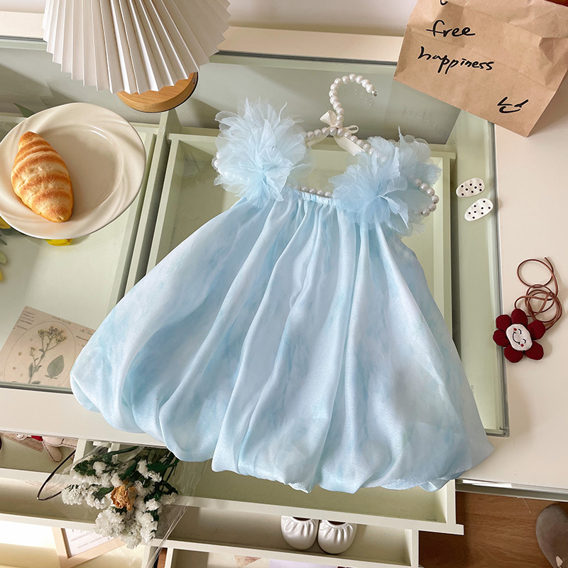 [재고] XQ259159 소녀 원피스 2025 여름 새로운 슈퍼 요정 메쉬 스트랩 디자인 유행
