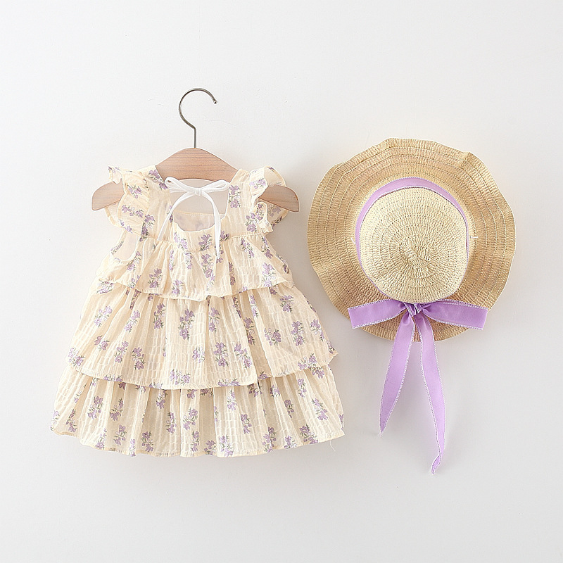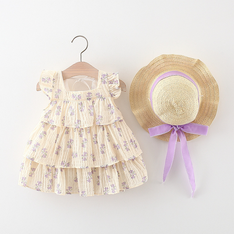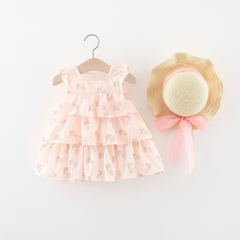 어린이 착용 소녀 여름 원피스 아기 소녀 아기 꽃 케이크 공주 치마 어린이 여름 착용 모자