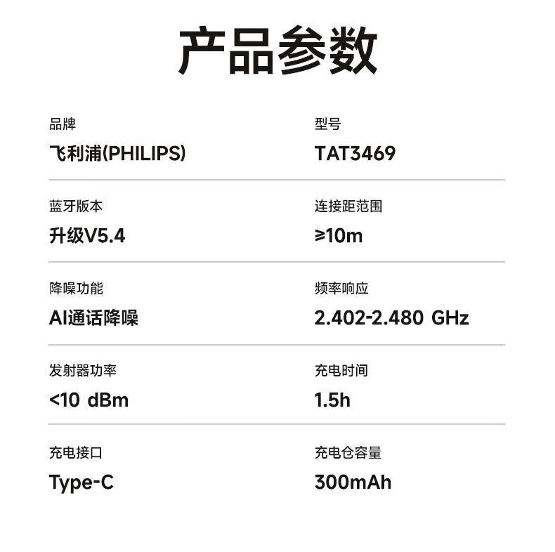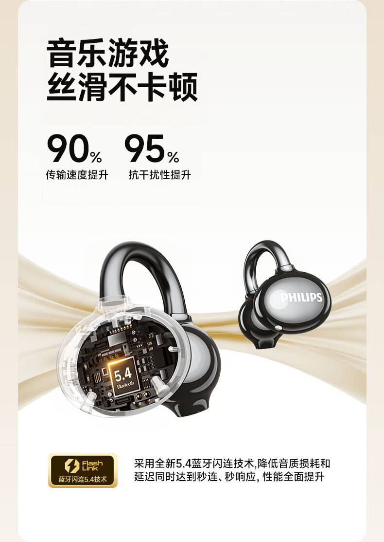 필립스/PHILIPS 이어클립 블루투스 헤드셋 TAT3469 무선 골전도 컨셉 소음 감소 긴 배터리 수명