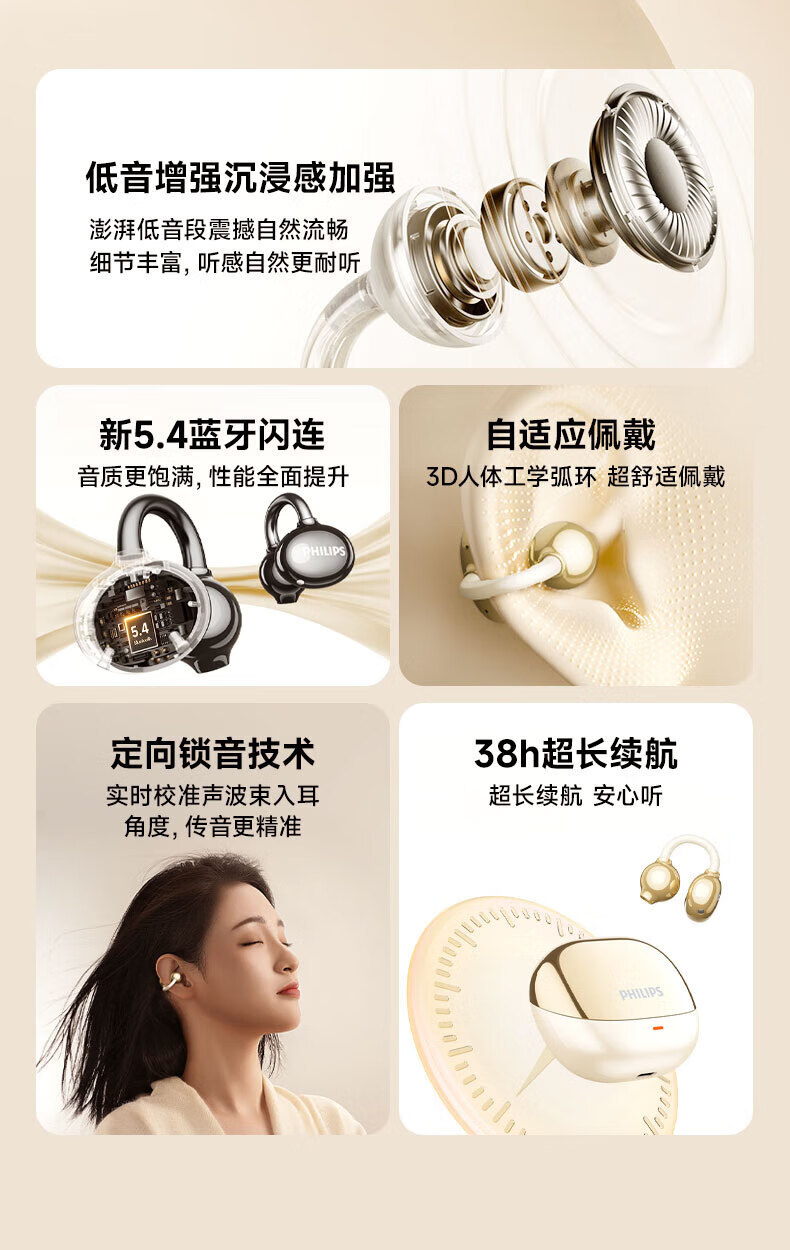 필립스/PHILIPS 이어클립 블루투스 헤드셋 TAT3469 무선 골전도 컨셉 소음 감소 긴 배터리 수명스토어 가기